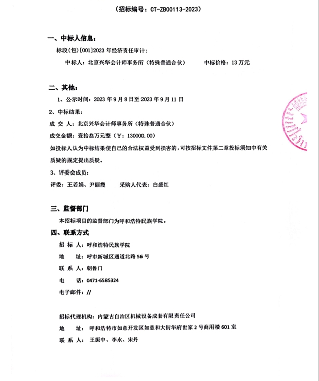 中标(成交)公告