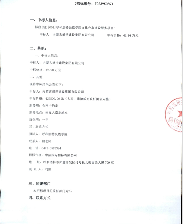 YABO鸭脖文化公寓建设服务项目中标结果