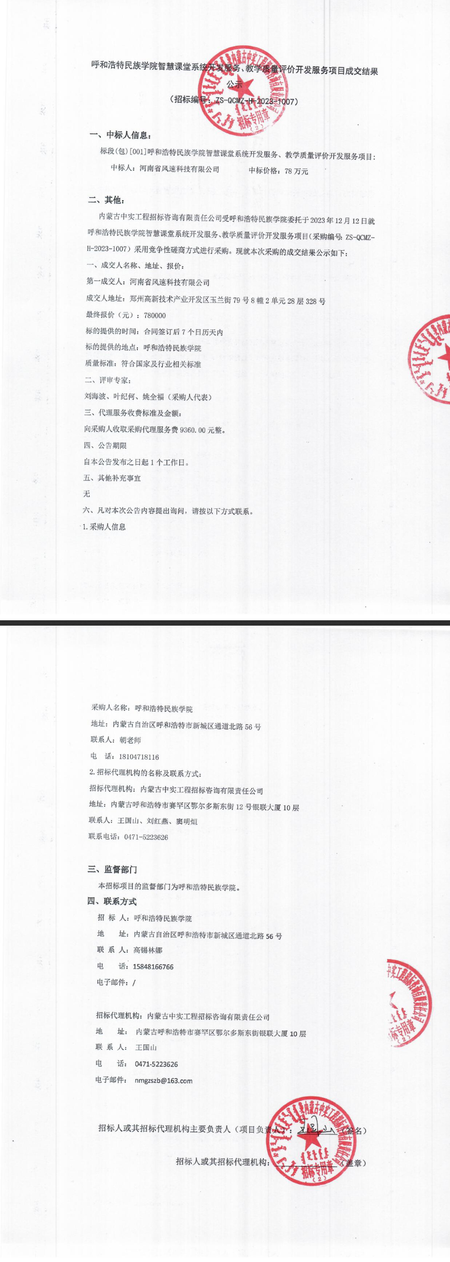 中标(成交)公告