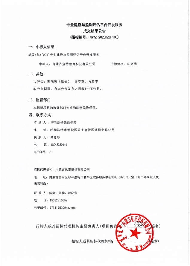 YABO鸭脖智慧课堂系统开发服务、教学质量评价开发服务项目成交结果