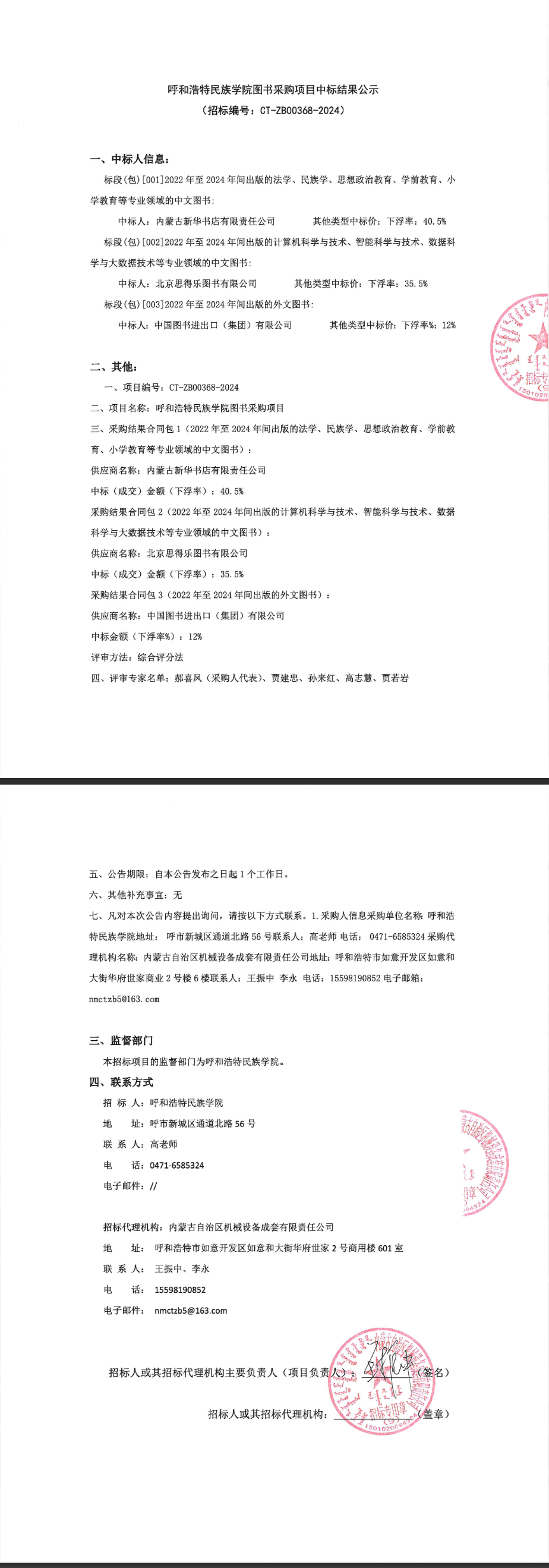 呼和浩特市民族学院2024年信息系统等保测评项目中标结果公示