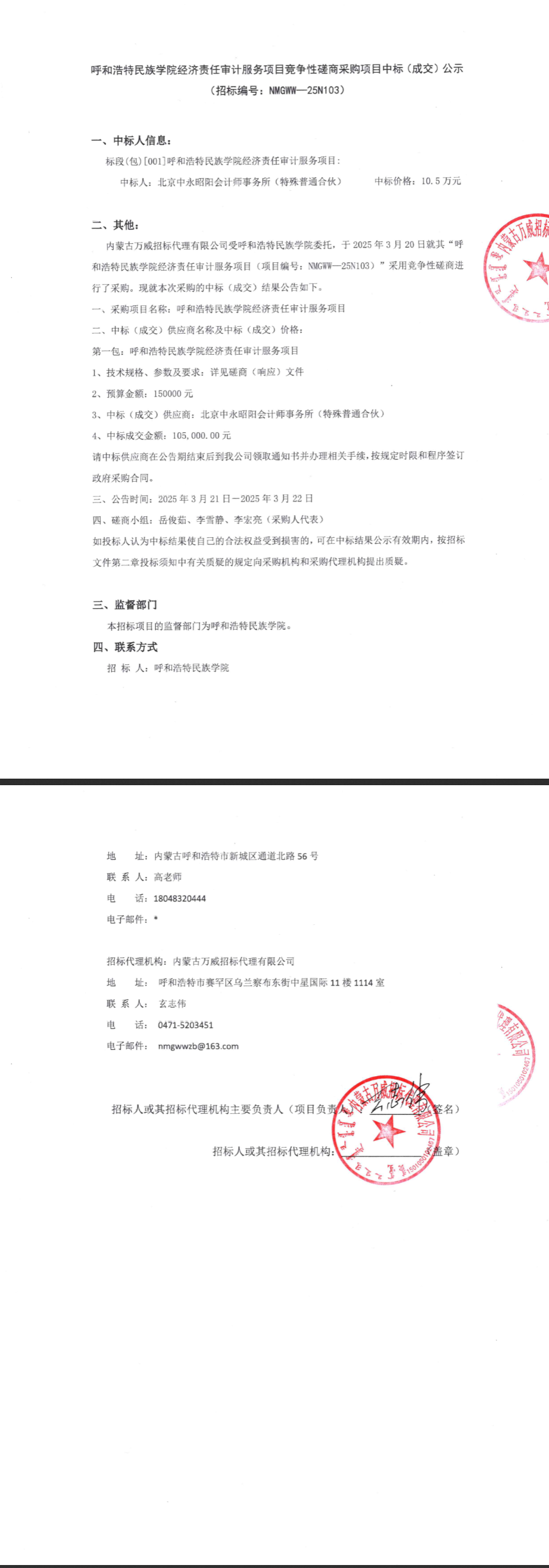 YABO鸭脖经济责任审计服务项目竞争性磋商采购项目中标(成交)公示