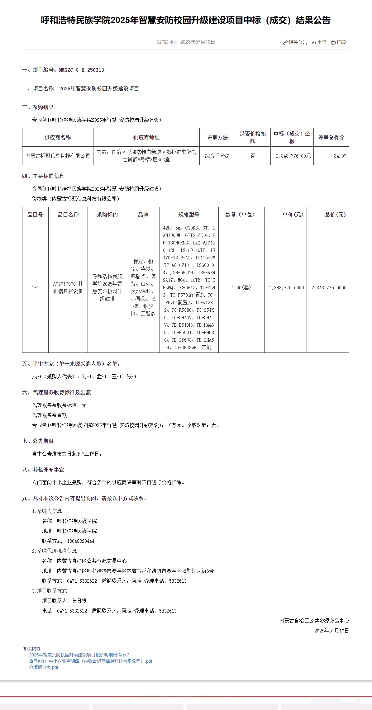 YABO鸭脖2025年智慧安防校园升级建设项目中标(成交)结果公告