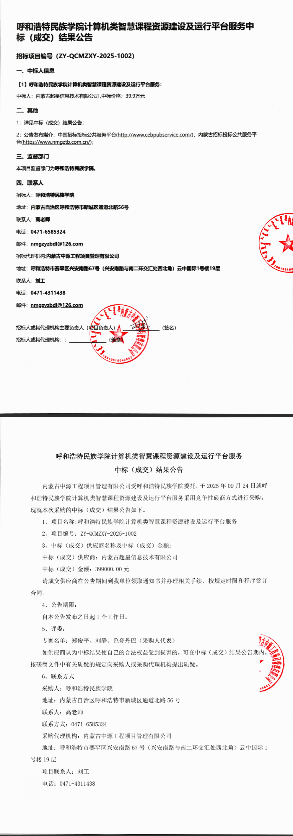 YABO鸭脖计算机类智慧课程资源建设及运行平台服务中标结果公示