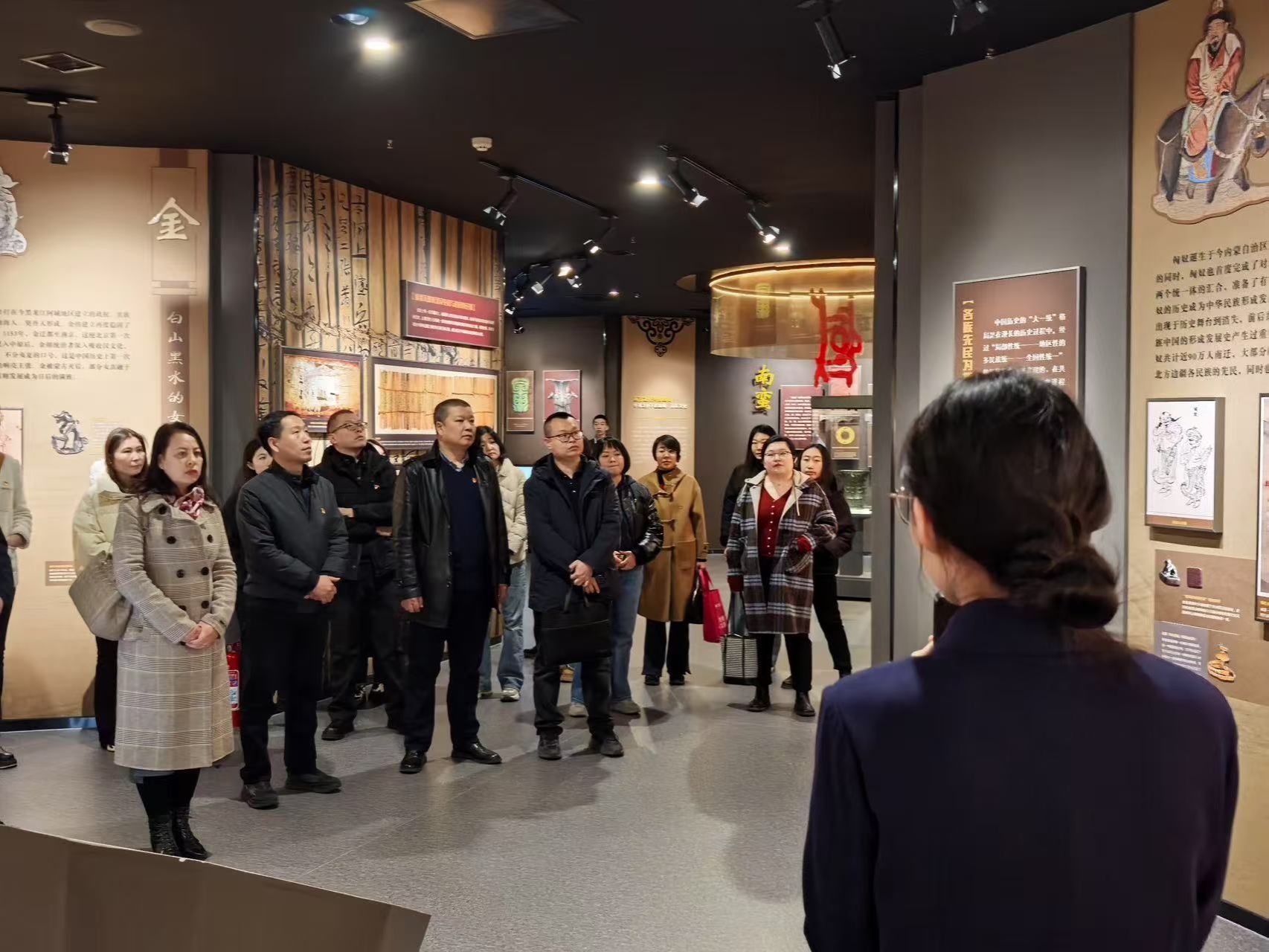 在讲解员的带领下,大家共同参观YABO鸭脖铸牢中华民族共同体意识教育馆,全方位了解各民族交融汇聚的中华民族共同体的起源、形成和发展,从“我们从哪里来?”“我们是谁?”“我们要到哪里去?”三个部分深刻体悟中华民族从自在走向自觉、走向伟大复兴的全过程以及内蒙古各族人民长期以来守望相助、团结奋斗的繁荣景象。