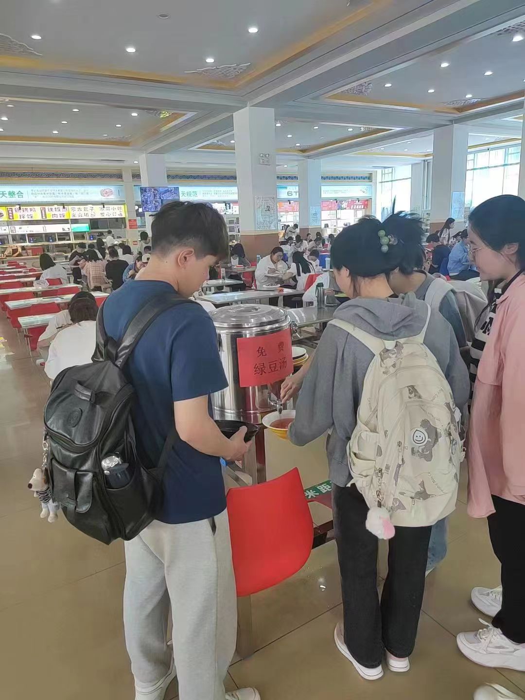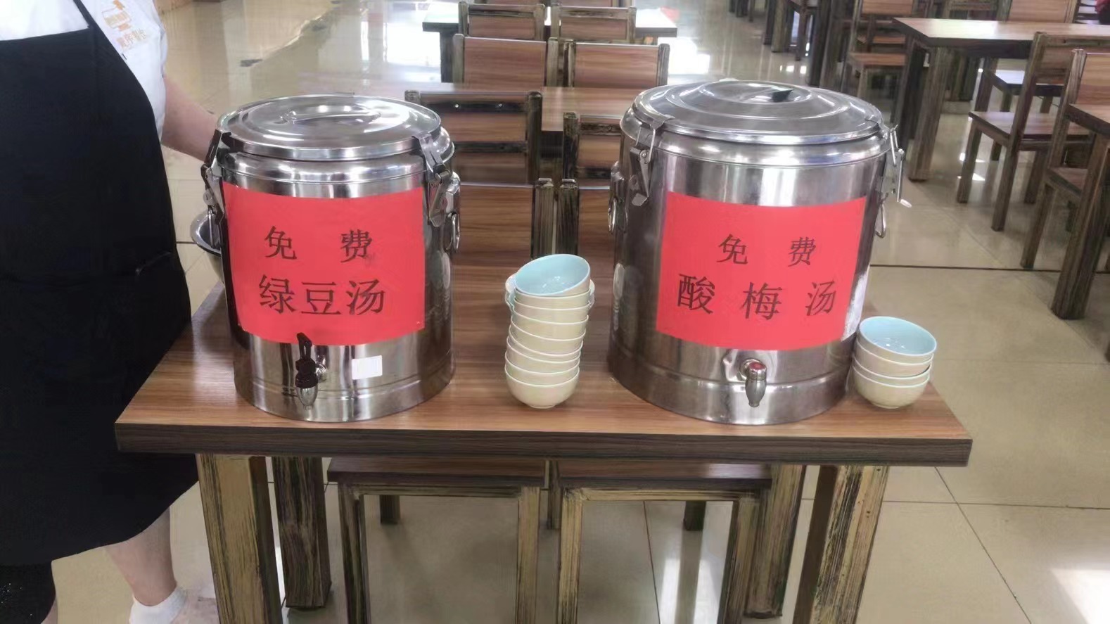 天气逐渐炎热,伴有连续的高温,为了做好防暑工作,更好地服务学校广大师生。学校后勤管理处餐饮服务中心全体员工为表达对师生的关心,帮助师生抵抗高温,6月6日开始,学校南、北食堂每一个楼层为师生们免费提供绿豆汤和酸梅汤饮用。在这炎炎夏日带给师生们一丝“清凉”和满满的爱意。