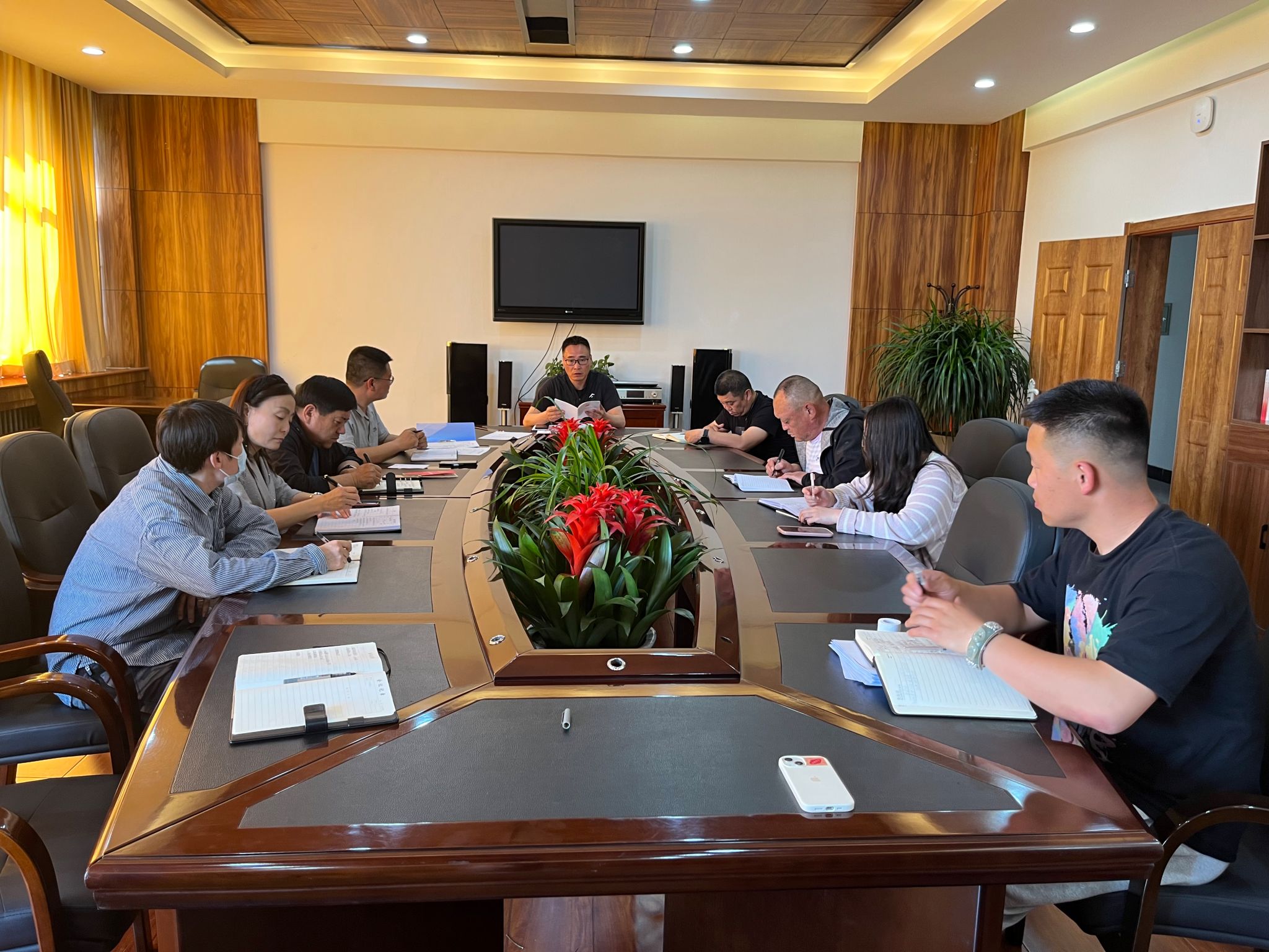 5月8日,后勤管理处党支部在敏行楼三楼会议室召开党纪学习教育专题诵读学习活动,全体职工参加学习。