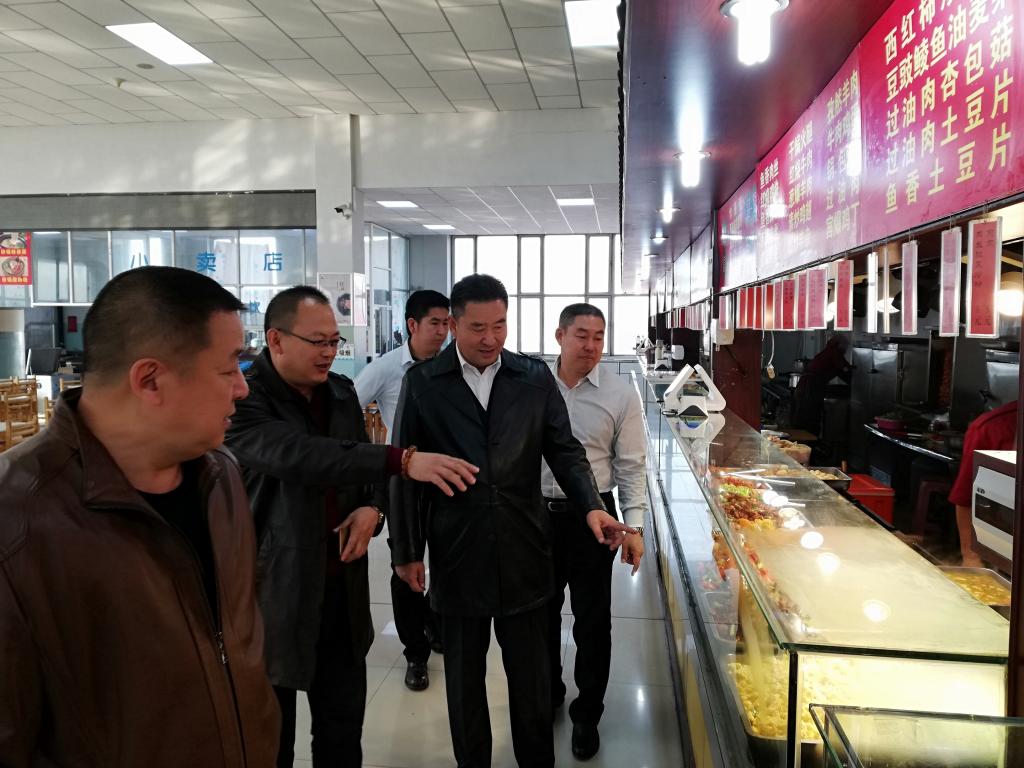 2018年11月12日上午,学校贺希格吉雅副院长在后勤管理处楚长利书记的陪同下,来到学生餐厅了解学生用餐情况及各项用餐准备工作情况。餐饮服务中心于海深主任对学生餐厅近期工作情况及部分工作流程进行了详细的介绍。贺希格吉雅副院长对食品卫生安全十分关注,他认真观看加工过程,了解原材料的来源和使用,品尝部分菜品品质。