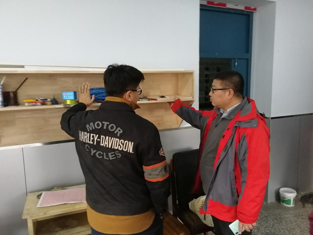 2018年12月3日上午,后勤管理处白图日根副处长对美术系教室改造工程进行监察。按照美术系的相关要求,后勤管理处对美术系产品设计专业的两个教室进行了改造,并得到了美术系主管老师的认同。