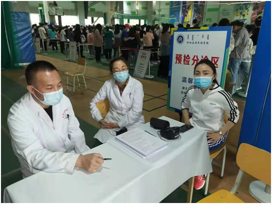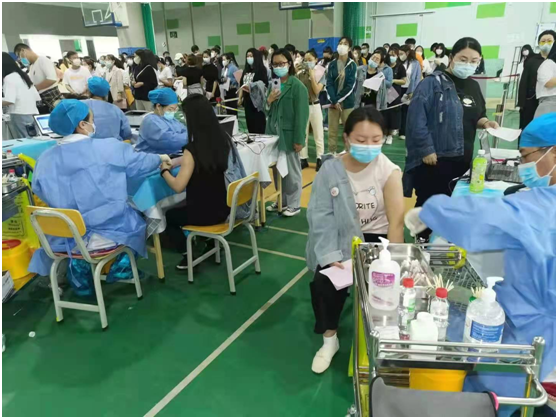 5月13日-15日,呼和浩特市卫健委、呼市妇幼保健院近50名医护人员走进鸭脖,为近8000多名在校师生员工接种新冠疫苗。
