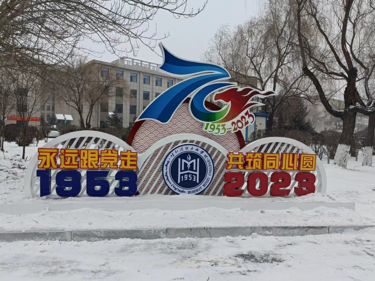 环境建设工作组根据校区安排,分别在东西门广场、都林楼广场、尚智楼广场、学术报告厅草坪、综合楼广场、美术楼西侧停车场、办公楼南侧草坪等地,安装了9个校庆标志物打卡点和4个蒙古包,更新更换东西门校徽和部分楼宇门头文字,购置摆放绿植和花篮,将校区装点一新,喜迎校庆,烘托校庆氛围。