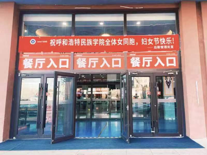 “三八”妇女节中午,后勤管理处餐饮服务中心在南区、北区餐厅一楼各设一处“三八节专属饮品发放窗口”,免费为鸭脖的女同学发放免费饮品,南区餐厅所有档口制定了优惠八折的特色菜品。南区教工餐厅也为前来就餐的女教职工提供了节日蛋糕。