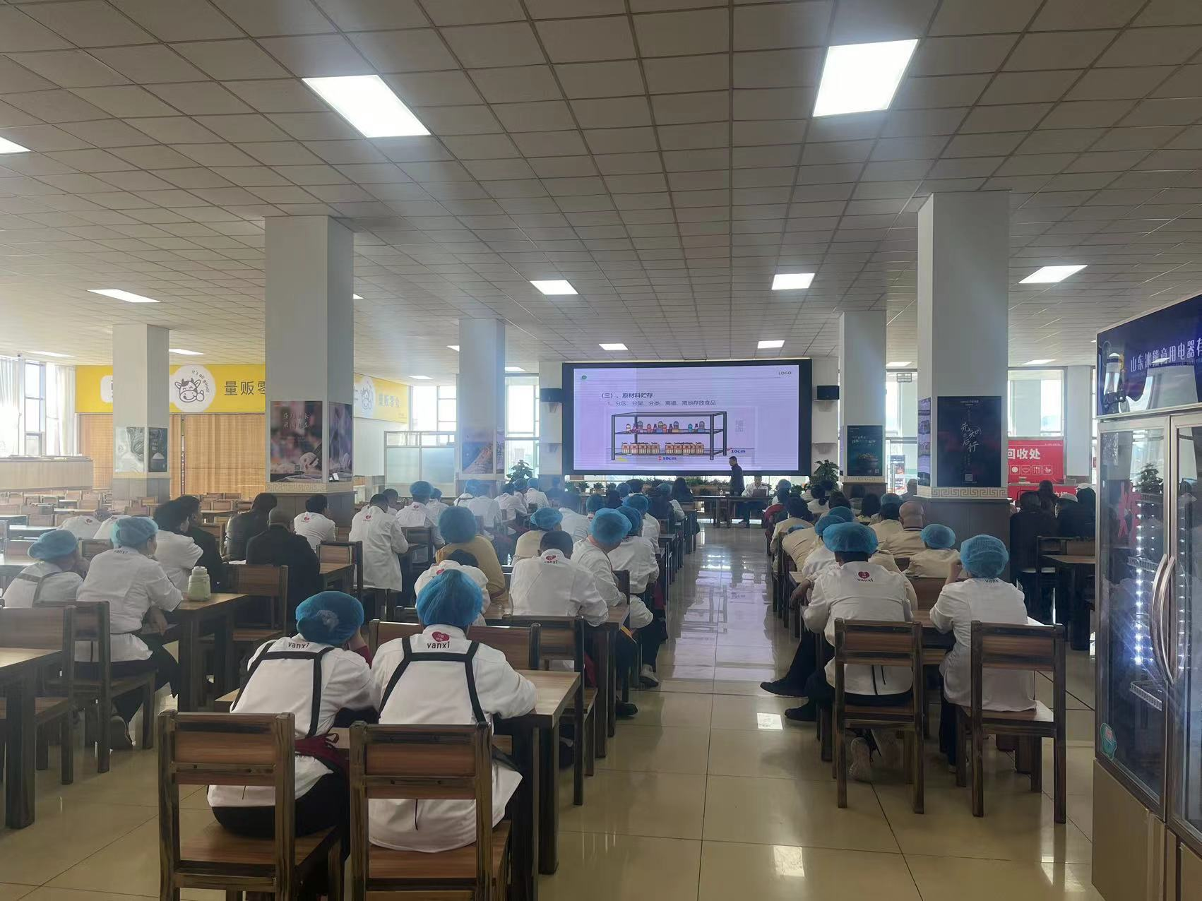 培训会上,后勤管理处餐饮服务中心管理人员以课件的形式带领食堂从业人员学习了食品安全法律法规和日常检查实例、食堂从业人员健康管理要求、食材进货查验、食品加工制作、食品留样、供餐用餐与配送等方面的内容。