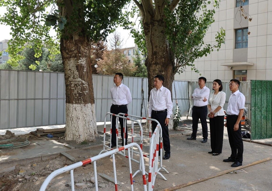 为进一步扎实落实消防工程改造、温暖工程等相关项目的假期施工安排,7月1日,校党委书记刘九万,党委副书记格根哈斯,党委委员、副校长高喜天,党委委员、副校长刘瑞鸿,党委委员、副校长双虎一行深入校园施工现场实地调研,与相关部门负责人进行现场交流,全面了解管网改造工作、校园绿化、铸牢中华民族共同体意识主题公园建设进度。