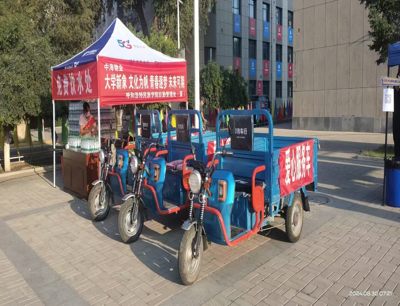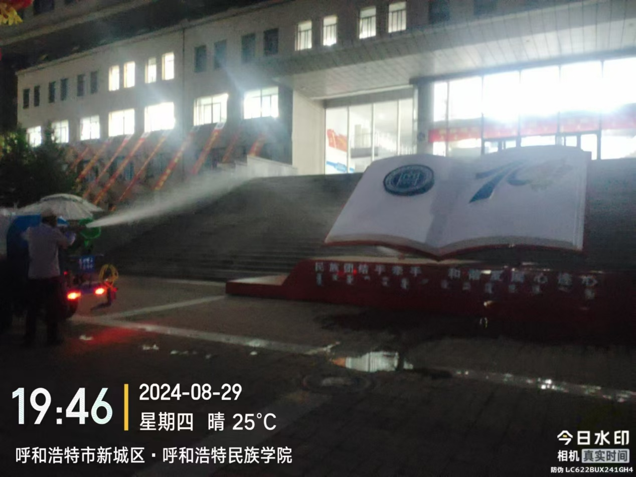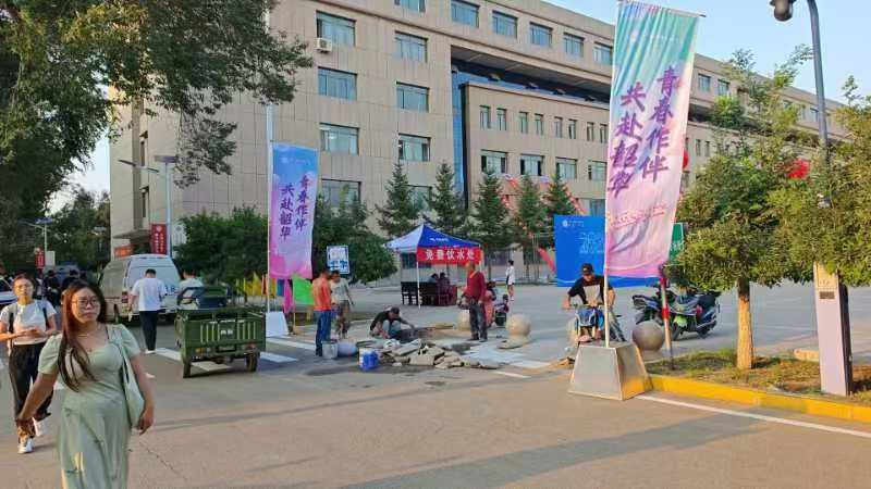 物业管理科、绿化科及中海物业公司工作人员对各自所辖区域内垃圾桶、垃圾房及垃圾中转站等公共场所全面打扫,及时清洁迎新现场、办公区域、教室和学生公寓公共区域卫生。持续优化绿化,购置摆放绿植和花卉,清洗宣传标志物、文化长廊橱窗及物资搬运工作。在迎新现场为新生及家长提供免费饮水处和搬运行囊车辆,全方位保障师生需求。
