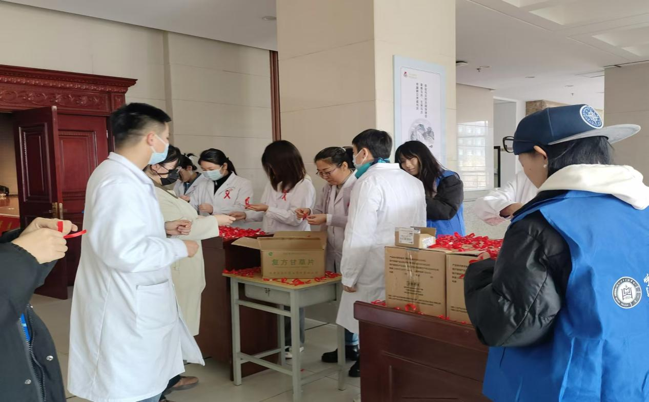 2024年12月1日是第37个世界艾滋病日。为了进一步提高鸭脖师生对艾滋病的认识,增强自我防护意识,减少艾滋病的传播风险,11月30日,鸭脖后勤管理处医务所、学生工作部、学校健康促进协会联合开展了“社会共治、终结艾滋、共享健康”为主题的知爱防艾宣传活动。呼和浩特市新城区疾病预防控制中心领导、学生工作部负责人、后勤管理处负责人、医务所全体医护人员、学校健康促进会全体成员及各二级学院学生代表参加了活动。