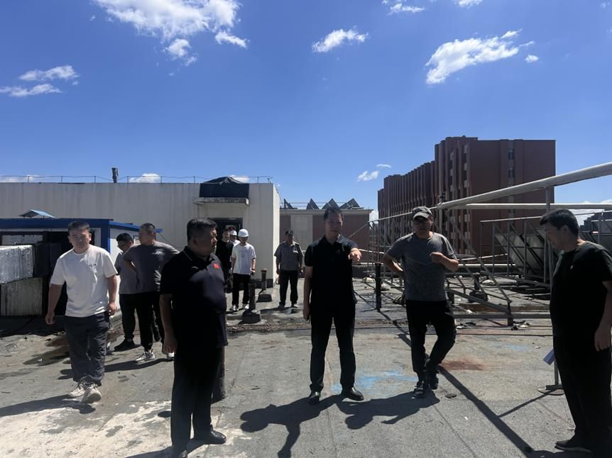 检查组先后到9号学生公寓、6号学生公寓、音乐与舞蹈学院、办公楼东侧、南图书馆、北食堂、都林楼北侧、综合楼一层、铸牢馆2、4、5层等施工现场进行全面细致的安全隐患排查,听取了相关负责人对项目实施和进展情况的汇报,重点了解了校内各项工程进度安排、安全生产防护措施落实、动火作业审批及施工人员日常管理等情况,明确了各施工现场安全员的职能职责,强调要时刻绷紧安全弦,持续完善安全管理制度,及时排查整改安全隐患问题,扎实做好施工现场安全防护;针对汛期强降雨导致的6号学生公寓顶楼屋顶漏雨情况,要求相关责任部门尽快维修处理,及时更换楼顶防水设施,防止雨水渗漏损坏学生财物,确保学生新学期返校正常住宿。同时,要求各单位切实扛起安全主体责任,确保责任到岗到人,扎实落实假期值班值守工作,持续强化校园重点区域、关键部位隐患自查、安全巡查,织密扎牢暑期校园安全防护网。
