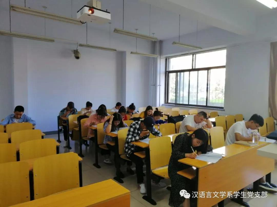 为了进一步提高学生党员学习党的理论、方针、政策的积极性和主动性,提高学生党员的理论水平,促进学生党员关心社会,了解国内外形势,进而培养他们的社会责任感,汉语言文学系学生党支部于2018年8月30日在都林楼112教室进行了应知应会理论测试,通过本次测试,一方面可以了解学生党员的理论知识掌握程度,为今后进一步加强学生党员的教育管理提供有效的依据。另一方面,以党建带动学风建设,有利于形成浓厚的学习氛围。