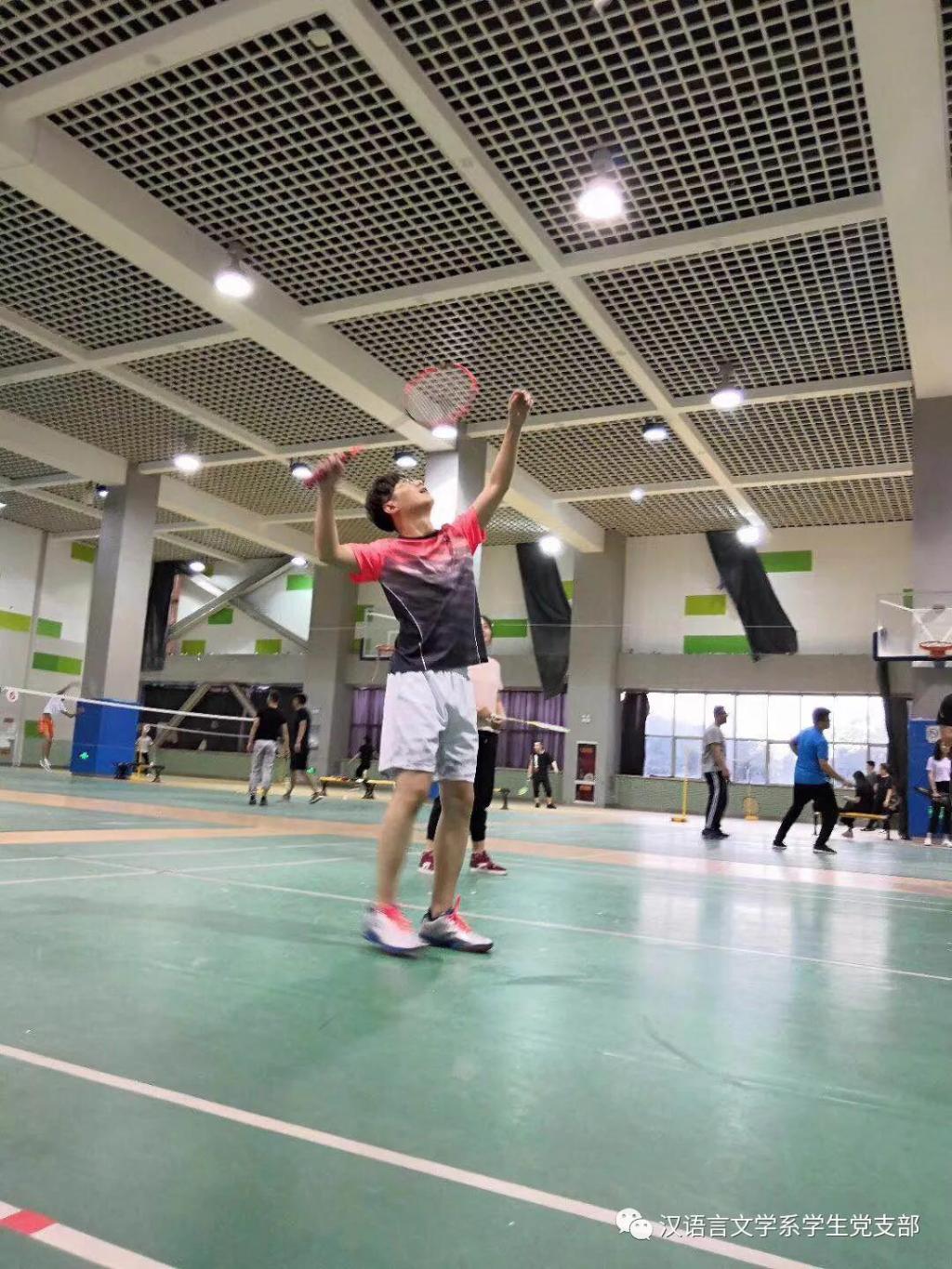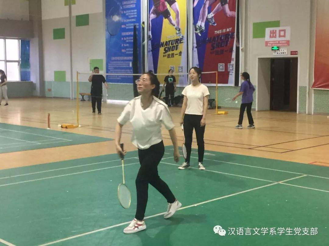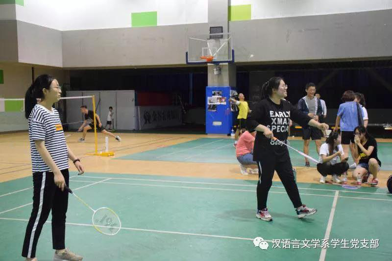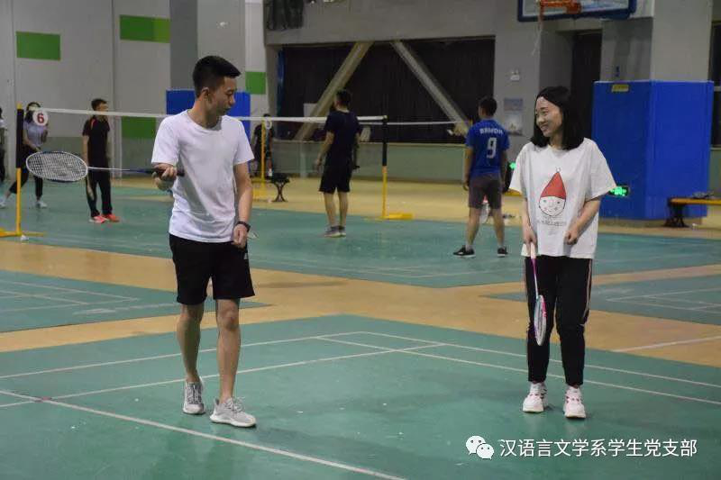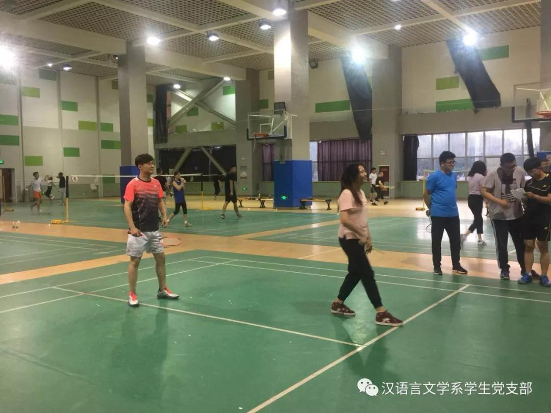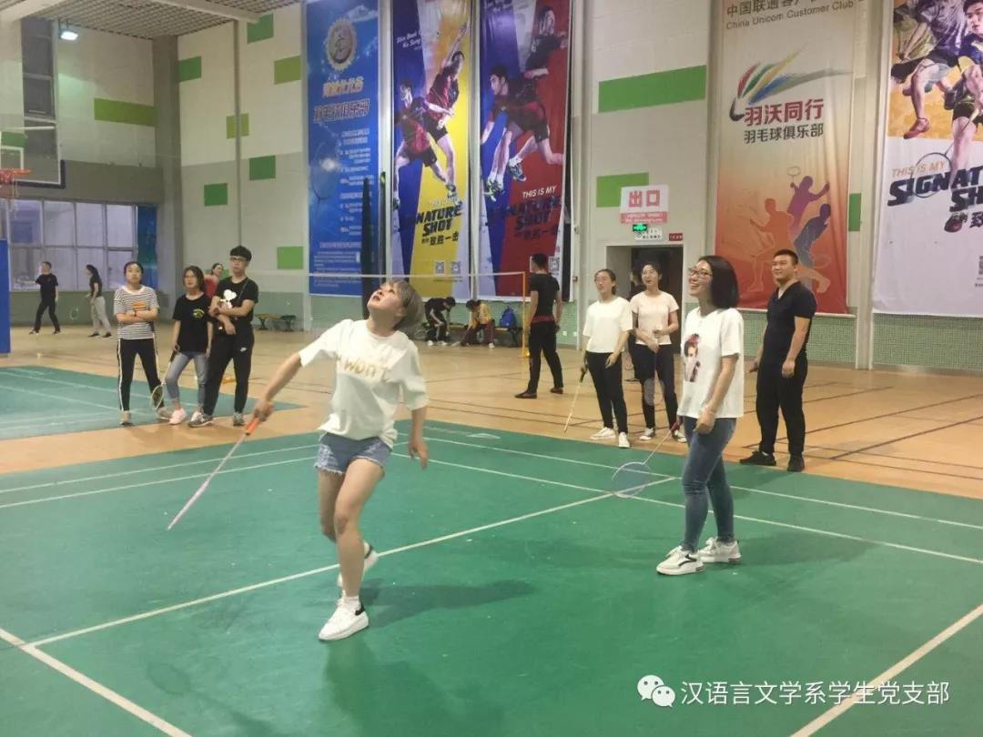在毕业季来临之际,汉语言文学系学生党支部为了欢送2014级毕业生党员,为了让同学们记住在支部度过的美好时光,于2018年5月17日晚在鸭脖体育馆一楼羽毛球场举行了羽毛球比赛,本场比赛在老师同学们的精心准备下激烈展开。学生支部书记张子涵老师及全体学生党员参加了比赛。
