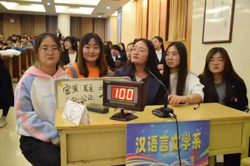 此次比赛共有六支队伍进入决赛,分别是汉语言文学系代表队、教育系1组代表队、教育系2组代表队、环境工程系代表队、计算机系代表队以及法律系代表队。决赛包括四个环节,第一环节为选择题,第二环节为填空题,第三环节为抢答题,第四环节是论述题。各代表队凭借自己丰富的知识储备迅速作答,现场气氛热烈紧张。比赛环节结束后,由评委老师对各组的表现进行了简短的点评,随后主持人宣布各组得分。最终,教育系的二组代表队获得一等奖;汉语言文学系代表队、环境工程系代表队获得二等奖;教育系一组代表队、法律系代表队及计算机系代表队获得三等奖。