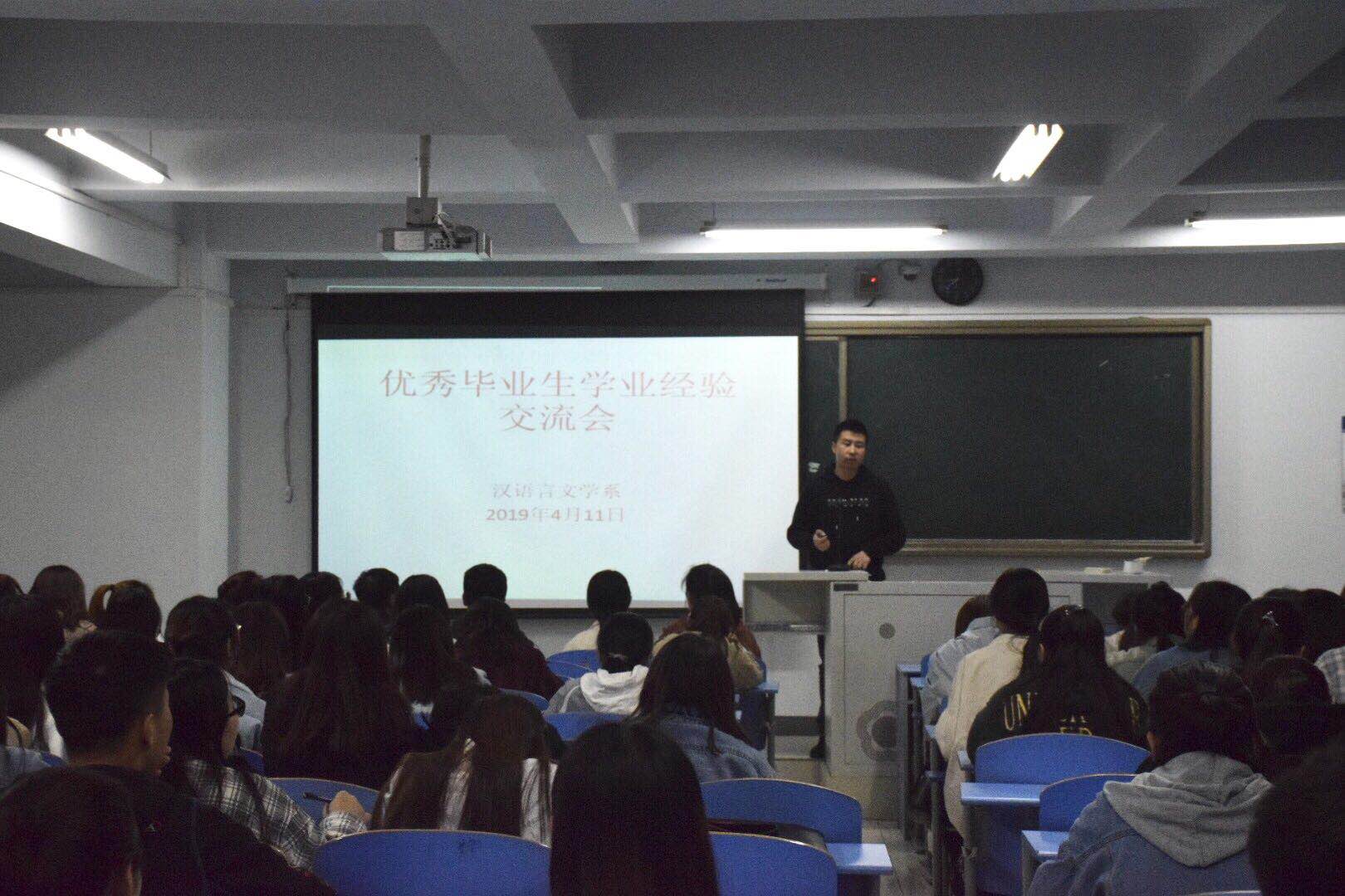 4月11日晚7时,汉语言文学系在都林楼506室举行优秀毕业生经验交流会,会议由2018级专职辅导员华国庆、雷娜庆、刘晓老师主持。本次活动邀请了2015级2名优秀班干、1名教师招考录取生、1名研究生录取生以及2015级、2016级2名专业顺利专升本的同学作经验分享,2018级百余名学生参加了本次活动。