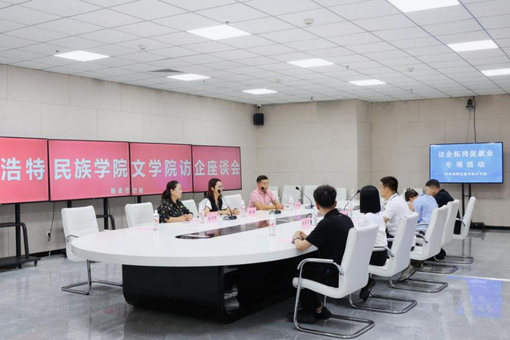 走访期间,学院向企业介绍了有关专业设置、人才培养以及毕业生实习实践、就业需求等情况。认真听取了各企业概况、企业价值观,了解了企业文化及用人需求。就文学院相关专业学生就业前景、就业现状及存在的问题进行了深入的交流探讨。双方围绕学生实习实践、就业指导培训、院企合作等方面达成共识,与蒙政公考签订毕业生就业实训协议并授牌。