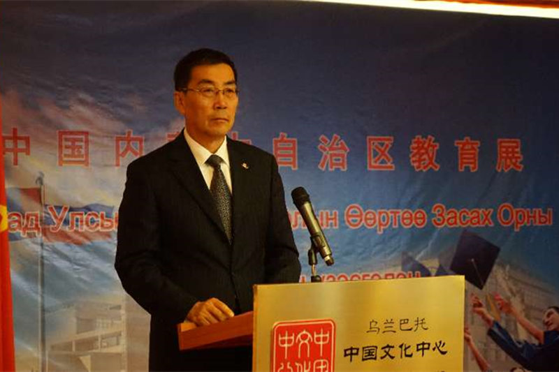 6月16日,首届中国内蒙古自治区教育展在蒙古国乌兰巴托市开幕。中国驻蒙古国大使馆文化参赞、中国文化中心主任李薇,蒙古国教文科体部国际合作与交流司司长额•恩和阿木古楞,中国内蒙古自治区教育厅副厅长张亚民,蒙古国国立大学孔子学院院长周俊立,国家汉办志愿者管理教师林玉宝,蒙古国中国文化中心副主任哈斯巴根等出席开幕式,开幕式由内蒙古自治区教育厅对外合作与交流处处长朱广元主持。