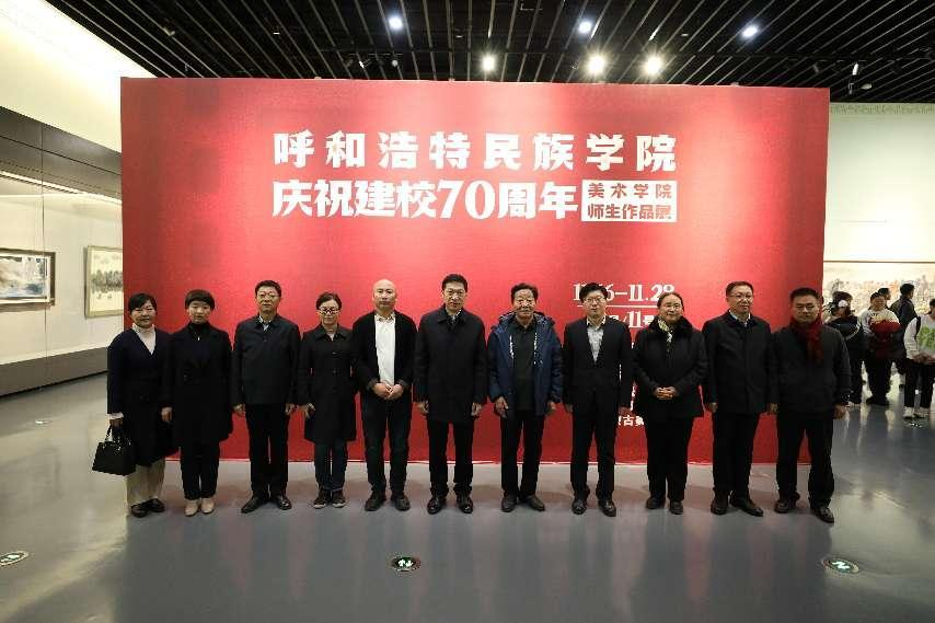 11月22日,学校党委书记刘九万,党委副书记、校长韩伟新等全体校领导来到内蒙古美术馆参观指导由鸭脖美术学院主办的“YABO鸭脖‘庆祝建校70周年’美术学院师生作品展”。美术学院副院长高特木乐汇报了师生作品展情况。