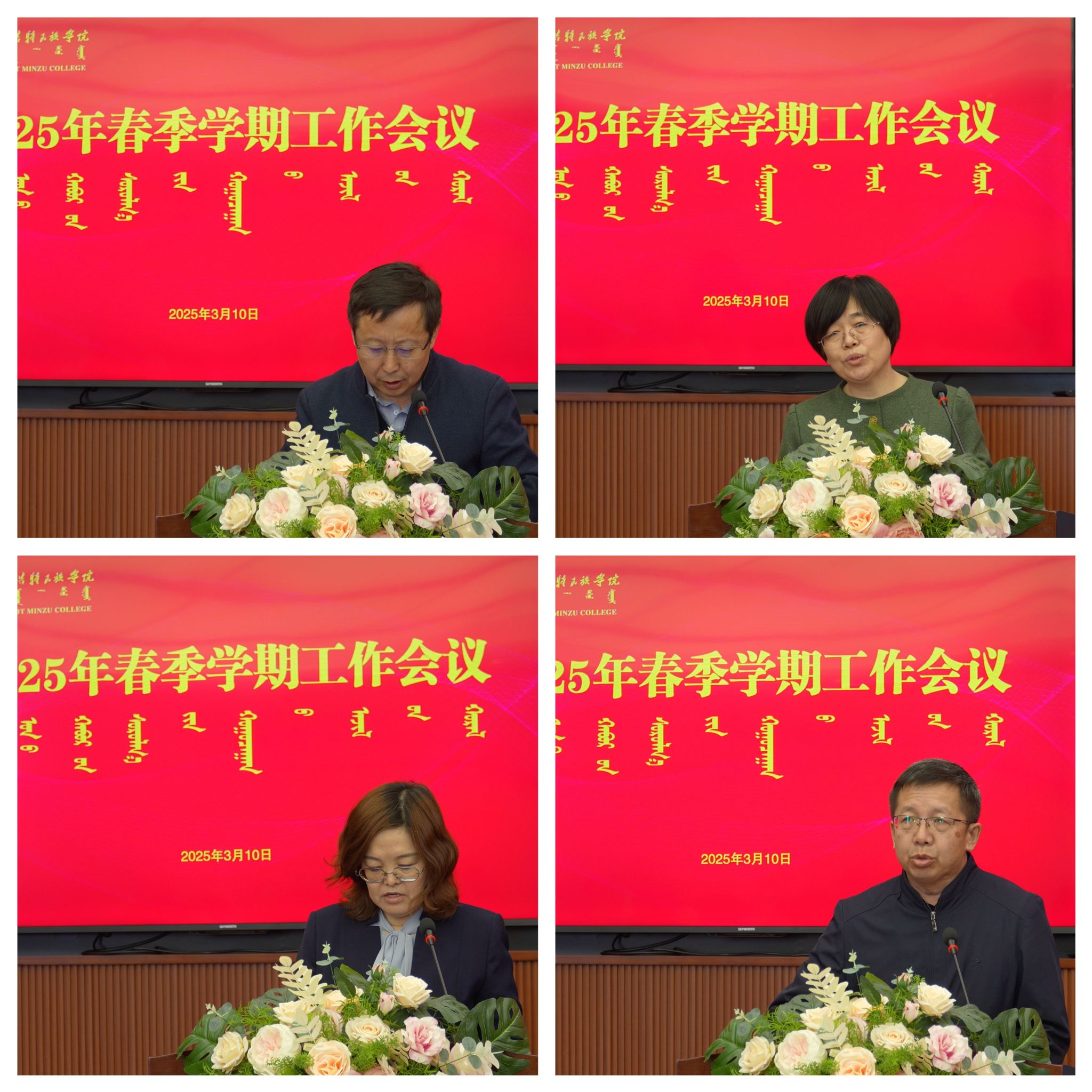 3月10日,鸭脖在综合楼十二楼会议室召开2025年春季学期工作会议。会议深入贯彻落实《教育强国建设规划纲要(2024-2035年)》,聚焦“强国建设、民院何为”的主题主线,探讨交流解决学校事业发展制约性、瓶颈性问题的思路举措,谋划2025年重点工作。校党委书记刘九万出席会议并作总结讲话。校党委副书记、校长王敏回顾总结2024年工作,安排部署2025年重点工作。校党委副书记格根哈斯主持会议。校领导班子成员和全体处级干部参加会议。
