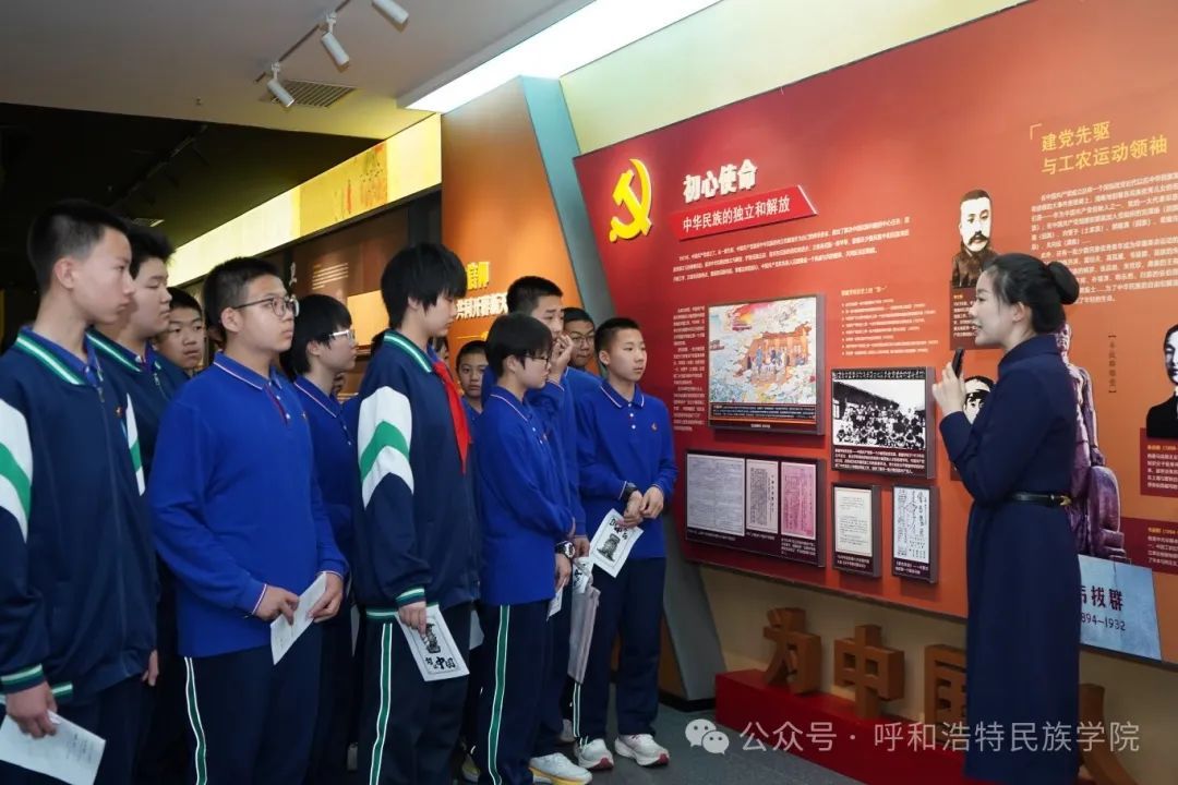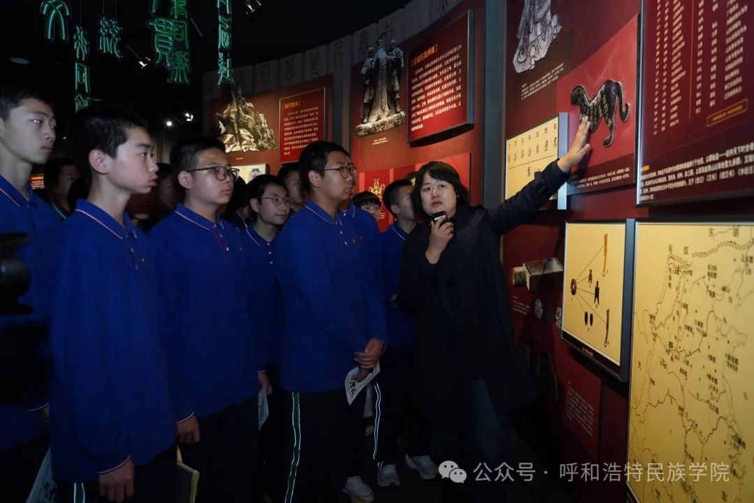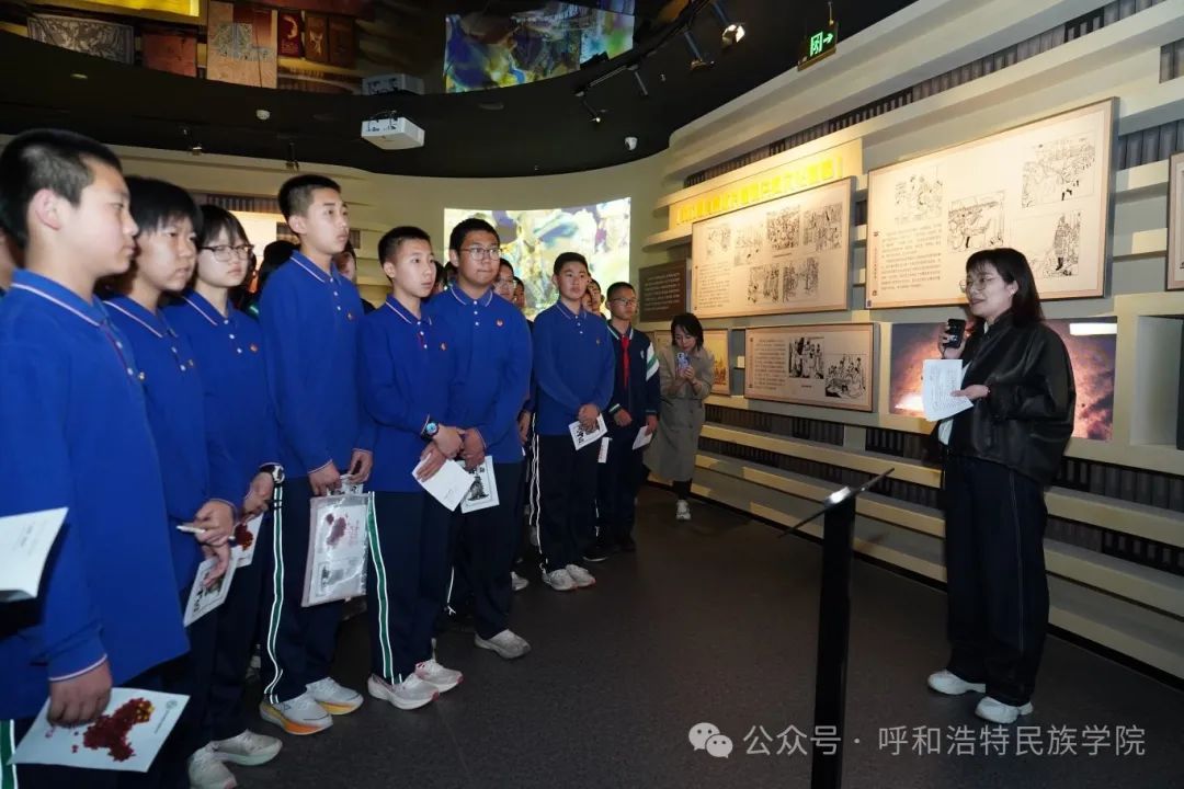 座谈会后,实验中学师生在铸牢中华民族共同体意识教育馆进行“行走的思政课”实践教学。实验中学思政课教师依托教育馆丰富的展陈资源,精心设计“理论浸润+场景体验”双轨教学模式。通过文物展陈、交互体验等科技手段将历史脉络转化为鲜活教材,教育引导青少年树立正确的“五观”,推动铸牢中华民族共同体意识内化于心、外化于行。现场教学后,实验中学一行人员参观了鸭脖校史馆。