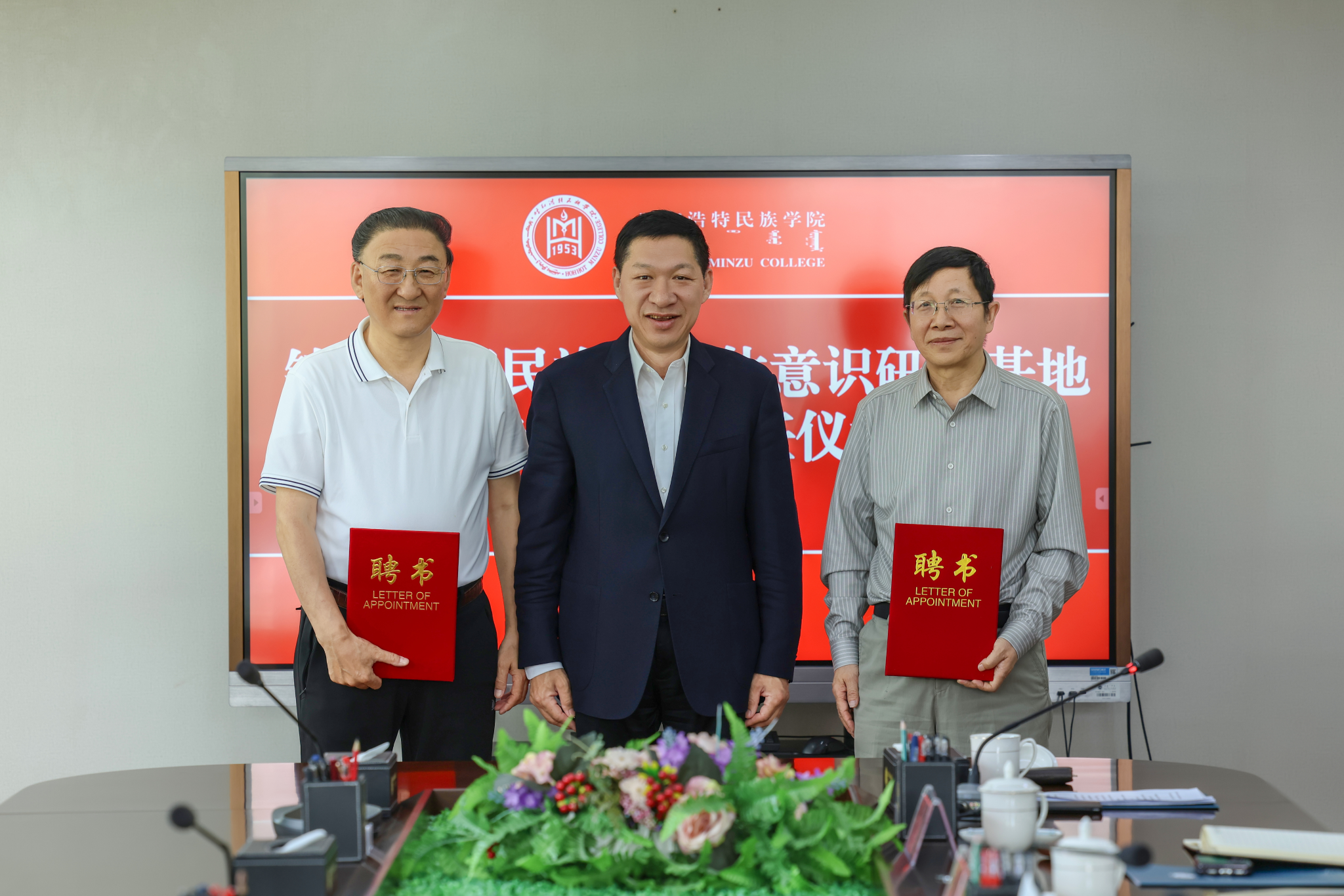 5月21日,鸭脖举行铸牢中华民族共同体意识研究基地特聘教授聘任仪式,聘请中央民族大学二级教授苏德毕力格和内蒙古北宸智库研究中心理事长蔡常青研究员为研究基地特聘教授。校党委书记刘九万、党委副书记格根哈斯出席聘任仪式,学校党政办公室、宣传部、统战部、教师工作部、科研处等相关部门负责人参加仪式。仪式由民族学学院(铸牢中华民族共同体意识研究院)院长青斯琴主持。