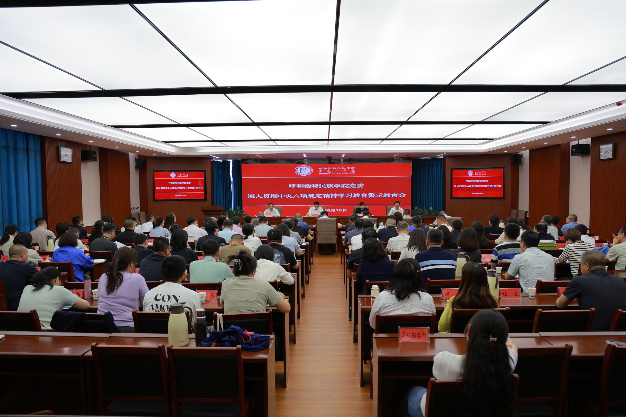 刘九万要求,全体党员、干部要将学习教育、查摆问题、整改落实贯通融合,永葆“为党育人、为国育才”的初心,秉承“崇正、尚智、务本、传承”的校训,以优良作风服务“教育强区”建设。要以清风正气滋养民族团结之花,以实实在在的工作业绩推动学校各项事业高质量发展,以求真务实的工作作风助力实现“贯穿一条主线、办好两件大事、弘扬蒙古马精神、闯新路进中游”的目标任务。