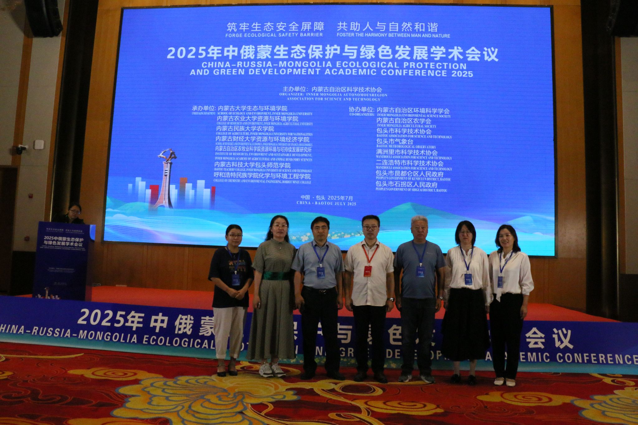 7月11日—12日,由内蒙古自治区科学技术协会主办,鸭脖参与承办的“2025年中俄蒙生态保护与绿色发展学术会议”在内蒙古包头市举行。鸭脖党委委员、副校长额尔敦布和,化学与环境工程学院相关负责人及学院的4位教师代表与来自国内外的270余位专家学者、科技工作者齐聚一堂,共同探讨生态保护前沿议题,交流绿色发展实践经验。