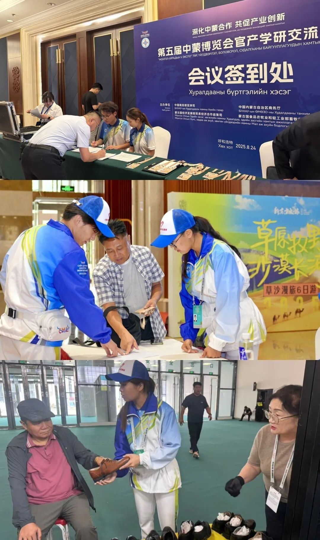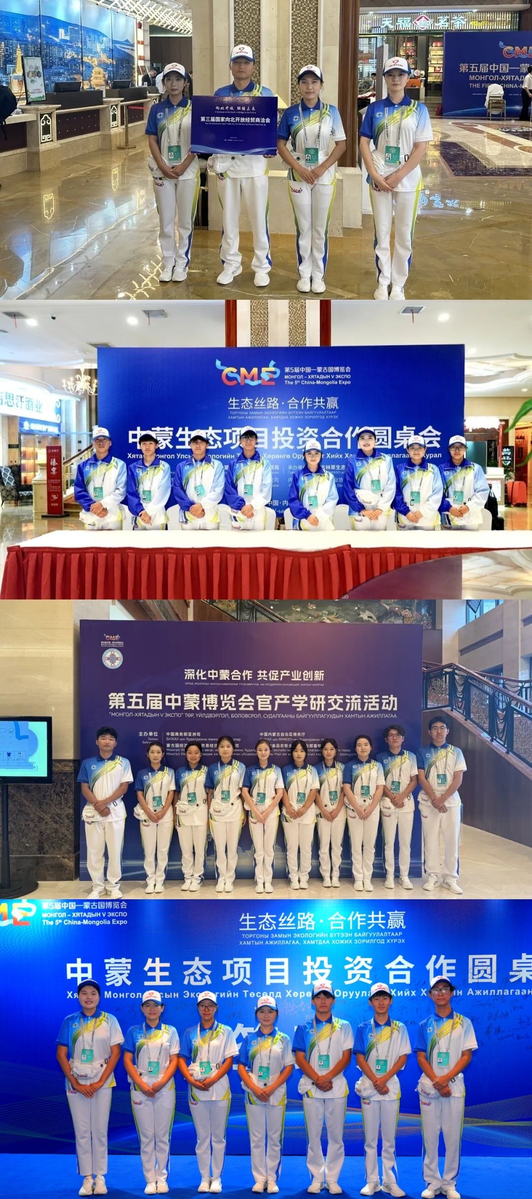 博览会期间,鸭脖师生积极参与多项核心活动。在中蒙官产学研合作研讨会中,以优异的汉蒙双语能力和会务组织能力,保障了学术与产业对话高效开展。在海关通关服务环节,师生协助引导、翻译及通关协调,保障了参展通道顺畅运行。此外,鸭脖师生还深度参与了中蒙妇女交流活动和生态合作圆桌会议,在文化展示、会议、礼仪接待、秩序维护、查询签到等方面发挥重要作用,有效促进了中蒙多领域合作交流。