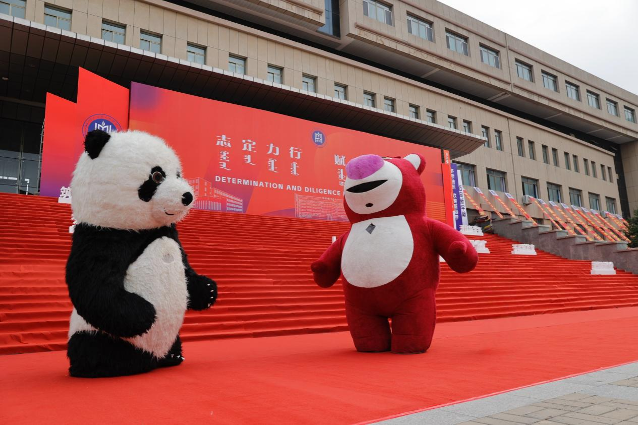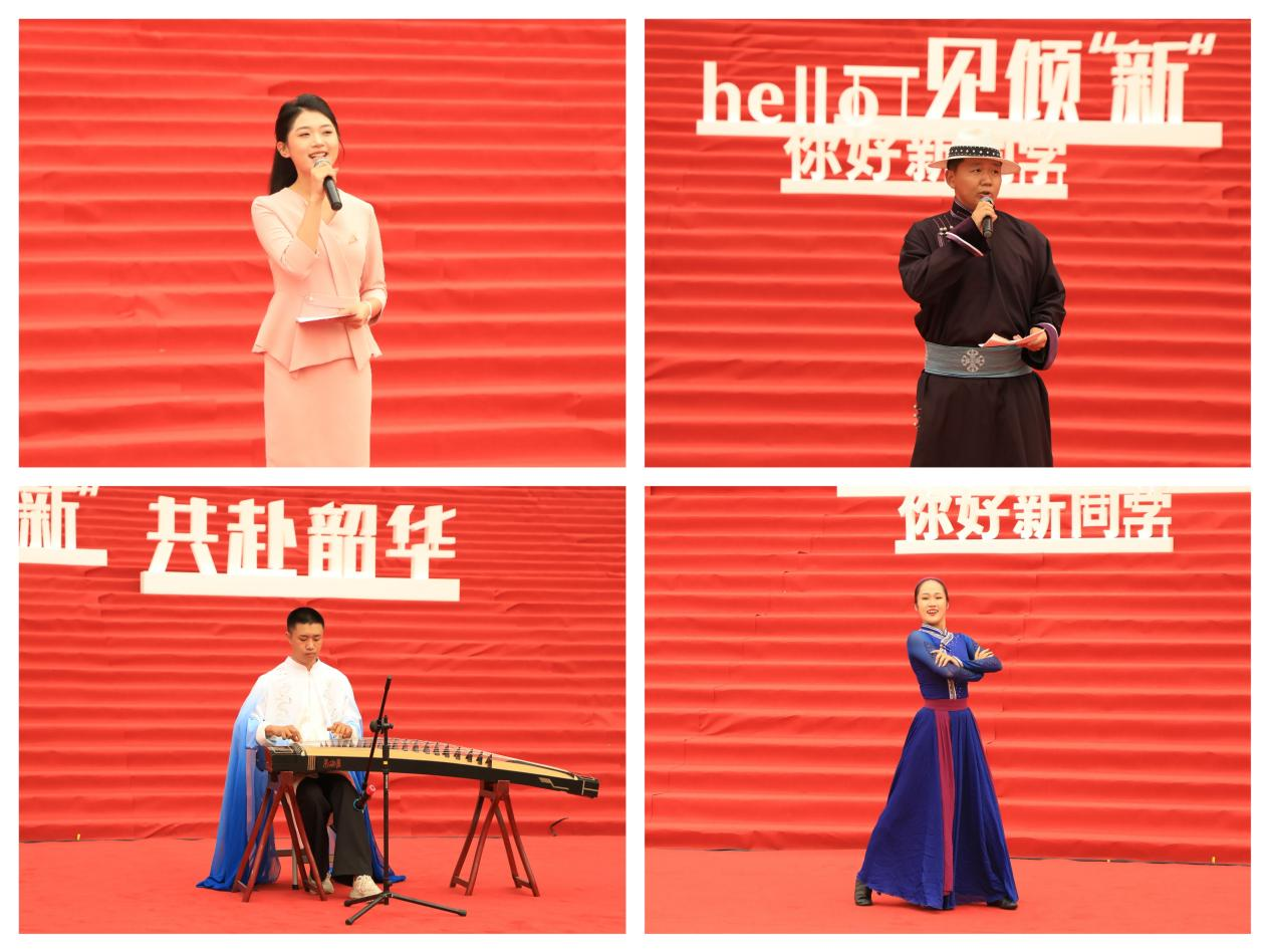 迎新现场,马头琴齐奏、歌舞表演轮番上阵,非遗艺术品琳琅满目,营造了浓厚的校园文化氛围。