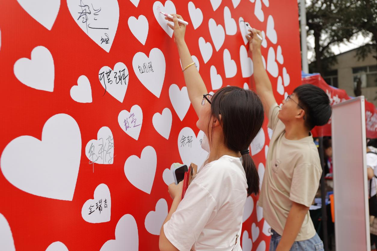 大家有序办理入学手续,纷纷在打卡点合影留念、在留言板上书写自己梦想起航的“第一笔”。