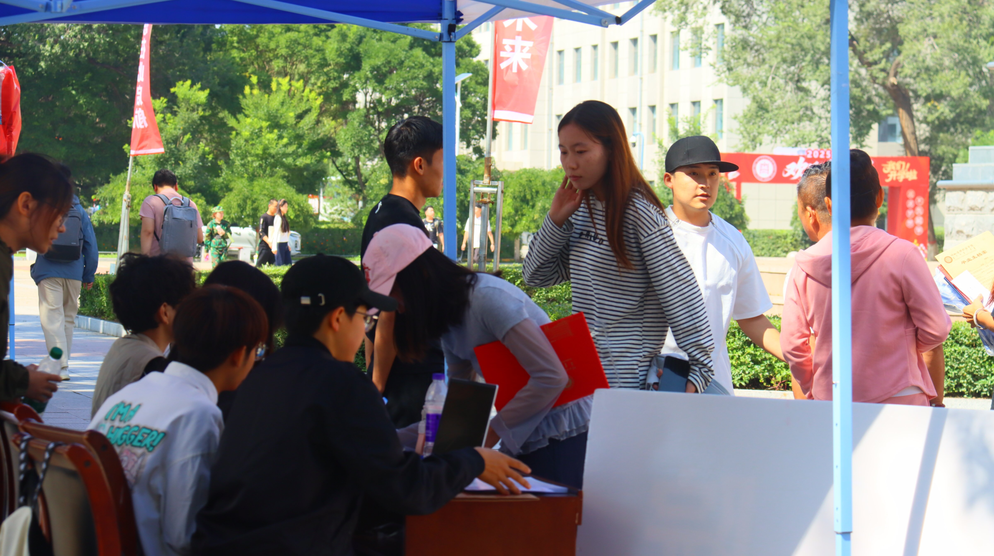 报到现场,学校设立了报到登记点、行李搬运点等功能区域,为新生提供“一站式”服务。从身份核验、材料提交、校园卡办理,到宿舍钥匙领取、生活用品购置引导,每一个环节都井然有序。工作人员耐心细致地解答新生疑问,志愿者们热情地帮新生搬运行李、指引路线,用温暖与关怀让新生快速融入校园环境。