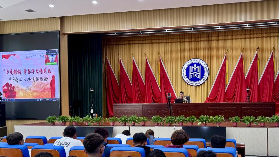 9月18日,参加纪念中国人民抗日战争暨世界反法西斯战争胜利80周年大会上,作为预备役部队方队的一员接受检阅的鸭脖学子董皓天同学,为全校2025级新生作了一场精彩的专题宣讲,全校2025级新生通过线上线下方式参加了此次活动。