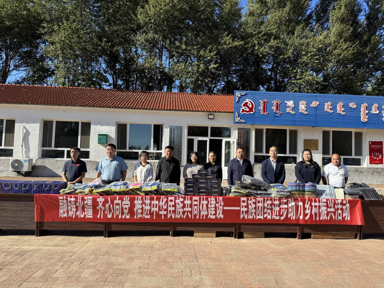 为落实全区第42个民族团结进步活动月的相关部署,持续推进学校“23456”民族团结进步创建工程,9月18日,学校党委统战部联合内蒙古自治区地方语言文字研究应用中心(内蒙古民族团结杂志社)、内蒙古自治区体育局,分别深入学校与体育局的乡村振兴联系点通辽市库伦旗先进苏木奈林稿嘎查和水泉乡,开展“石榴籽e起来——送政策送技术送服务”民族团结进步助力乡村振兴活动。自治区民委地方语言文字研究应用中心、自治区体育局、学校党委统战部、学校语言文字工作委员会办公室相关工作人员,乡长、驻村第一书记、元仓子村和先进苏木班子成员、嘎查“两委”成员、嘎查群众,以及学校“北疆小红马”大学生讲解团、校园乌兰牧骑队员共500余人参加活动。