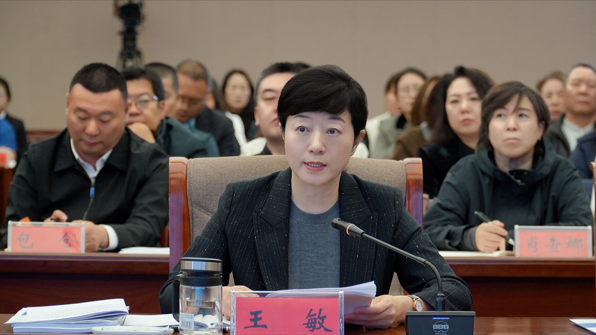 王敏介绍学校概况,从构建大思政育人格局、推动专业转型升级、深化协同育人模式、激发教师队伍活力以及构筑质量保障体系等方面总结了学校在本科教育教学工作中的成效与举措,并明确了持续改进的目标与方向。