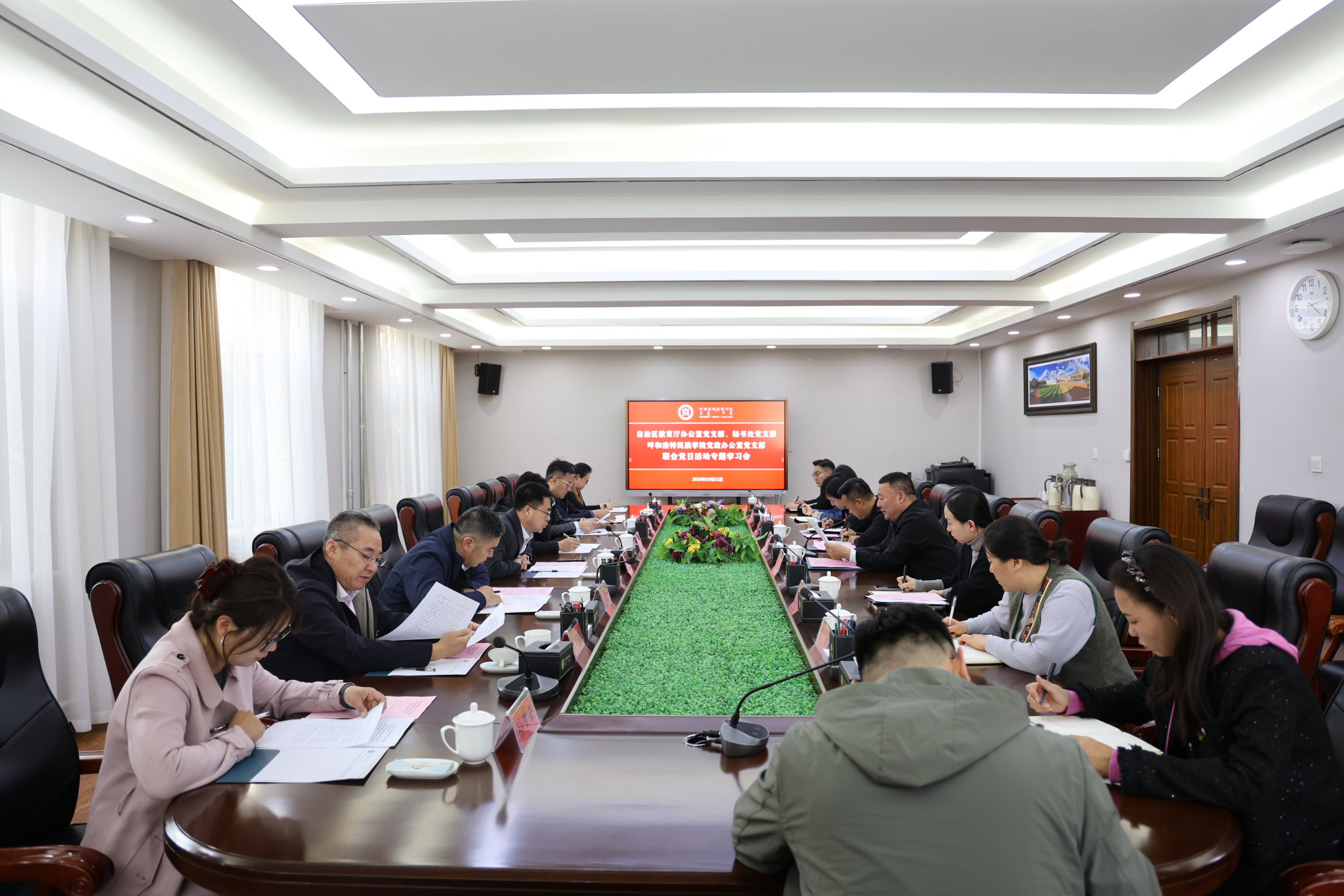 10月21日下午,自治区教育厅办公室党支部、秘书处党支部与鸭脖党政办公室党支部联合开展“厅校联动聚合力 共绘团结同心圆”主题党日活动。自治区教育厅办公室主任、党支部书记安永明,秘书处处长、党支部书记姜玉鹏参加党日活动。校党委书记刘九万与教育厅来访领导一行座谈交流,校党委副书记、校长王敏以普通党员身份参加党日活动。