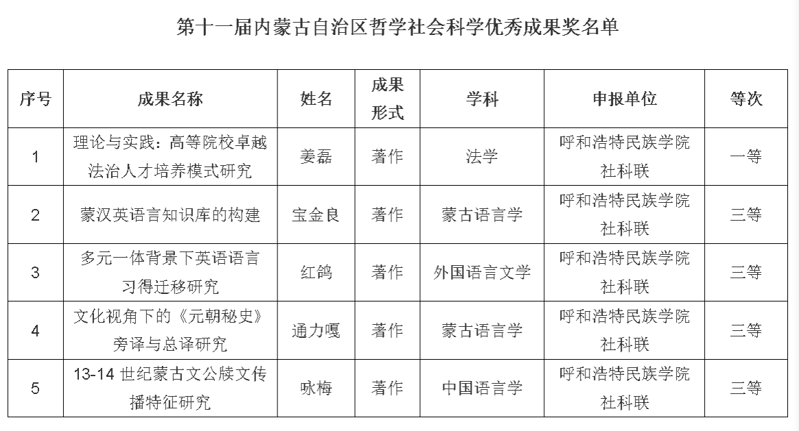 鸭脖五项成果荣获第十一届内蒙古自治区哲学社会科学优秀成果奖