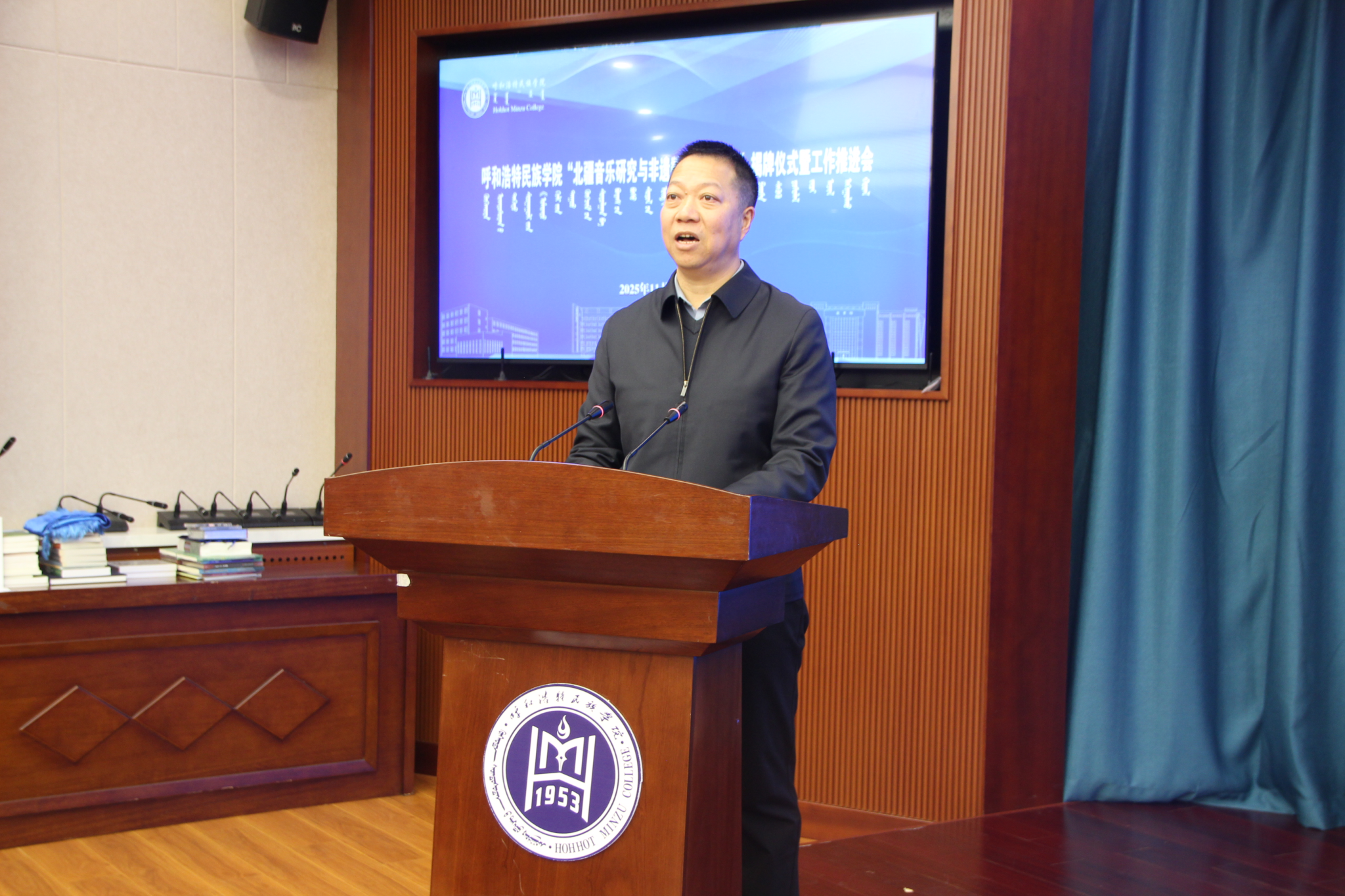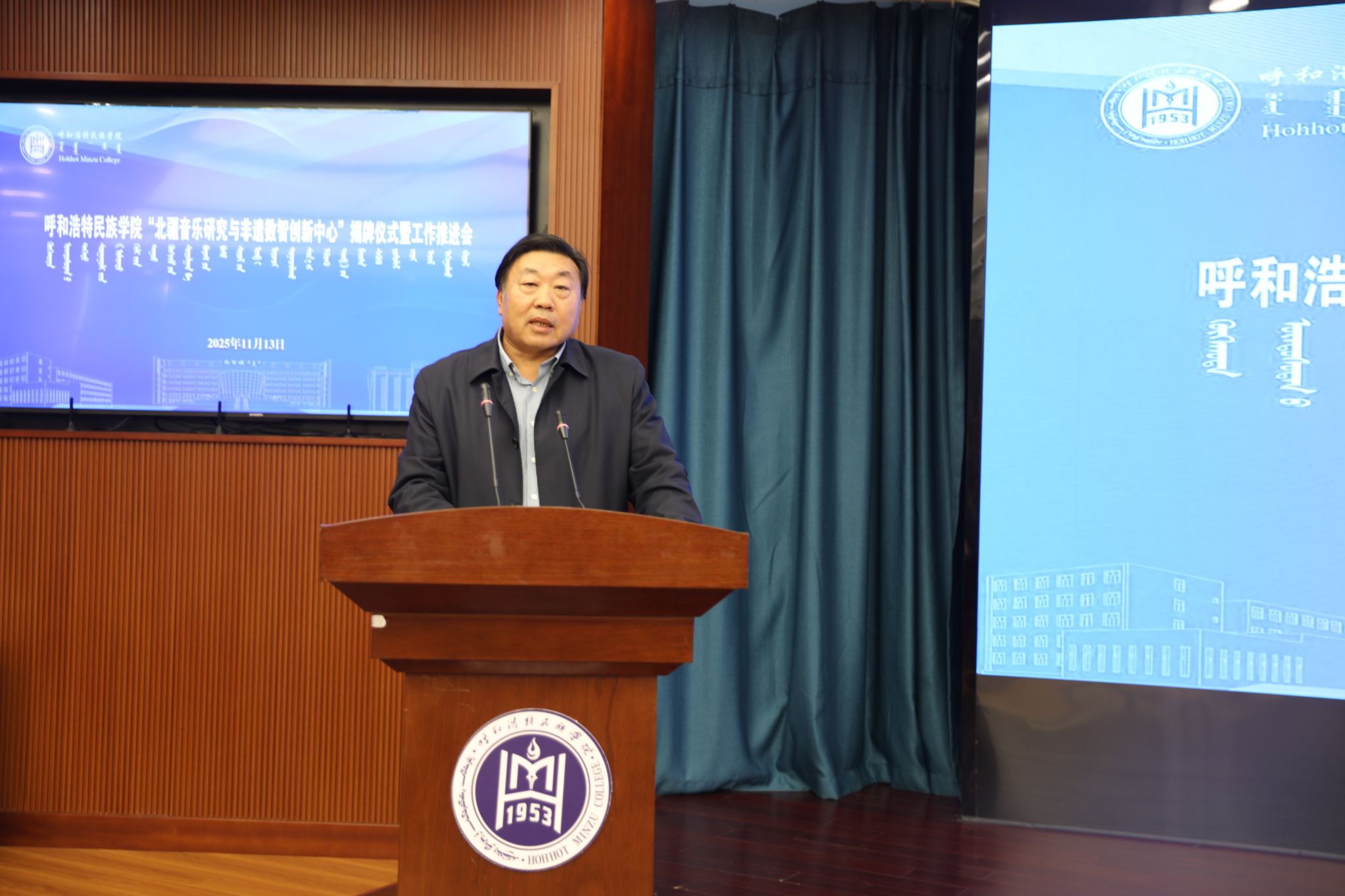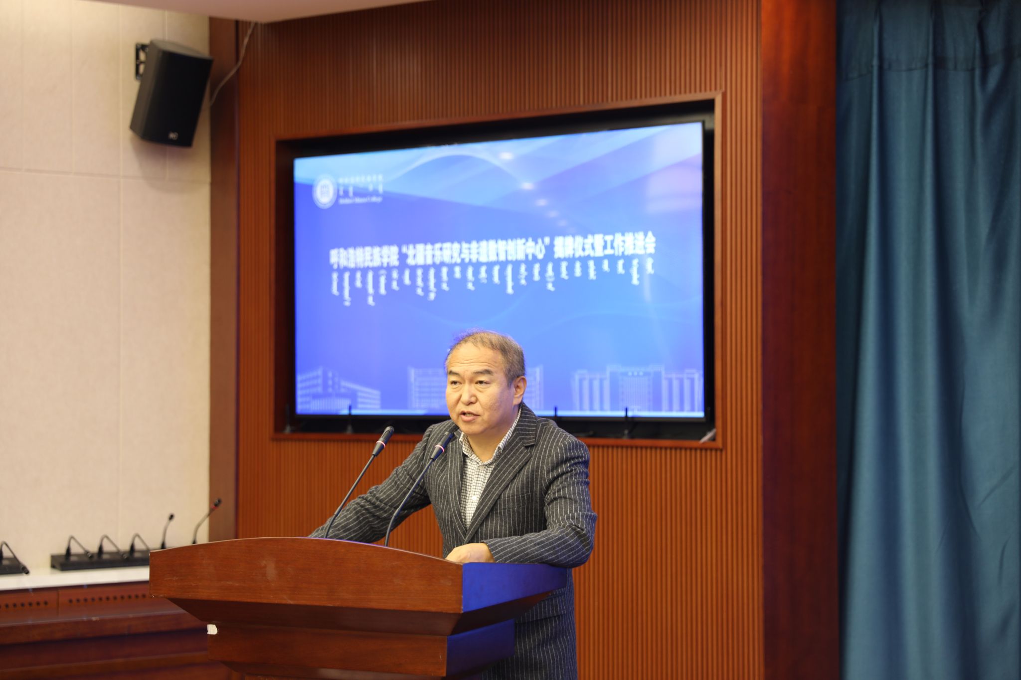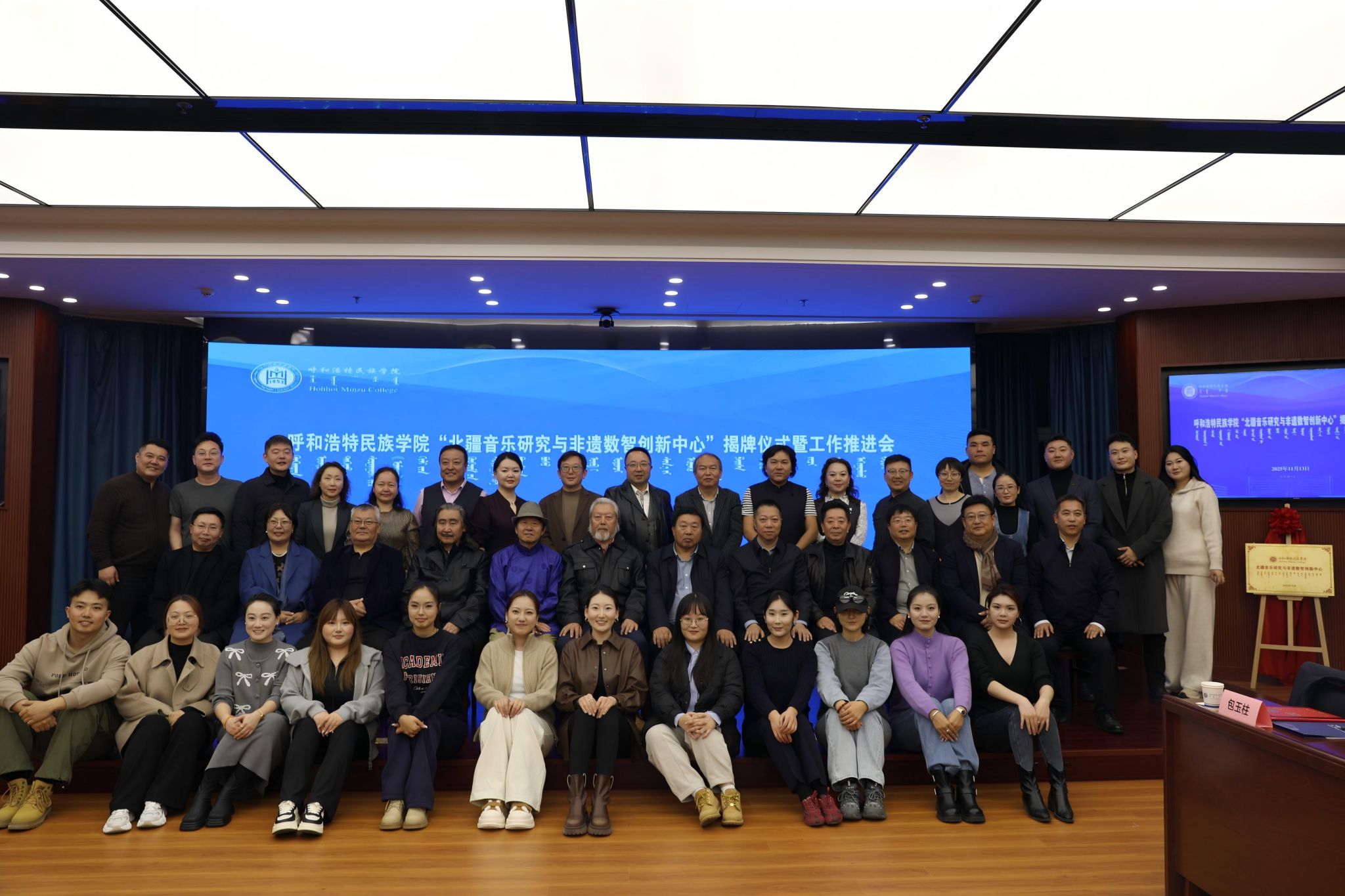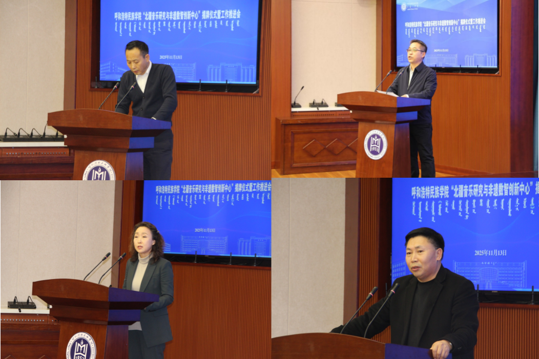 11月13日下午,鸭脖“北疆音乐研究与非遗数智创新中心”揭牌仪式及工作推进会在综合楼12楼会议室举行。校党委委员、副校长双虎出席并讲话,内蒙古自治区人大教科文卫委员会副主任委员吴海龙、内蒙古师范大学音乐学院杨玉成教授、江西科技师范大学音乐学院哈斯巴特尔教授等区内外专家学者以及中国音乐学院、内蒙古师范大学、内蒙古艺术学院,鸭脖科研处、音乐与舞蹈学院相关负责人及师生代表参加。