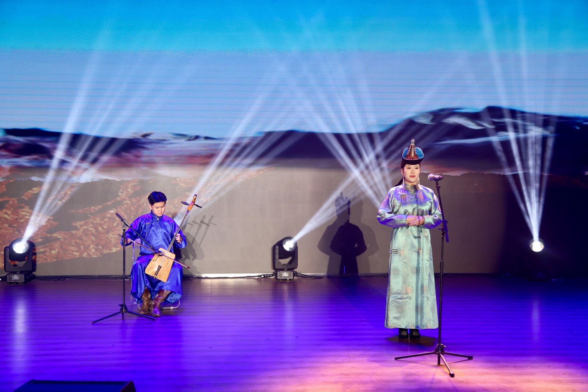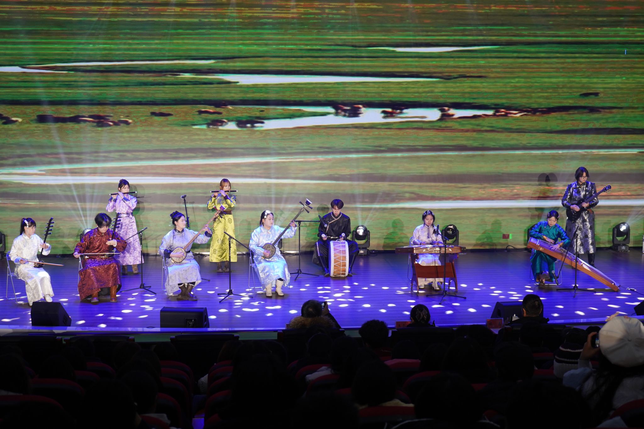 12月23日晚,“青春逢盛世,奋斗正当时”文艺晚会在学校铸牢中华民族共同体意识教育馆二楼报告厅隆重举行。整场晚会主题鲜明、编排精美,集中展现了鸭脖美育实践教育阶段性成果,进一步营造格调高雅、青春向上的校园文化氛围。校党委委员、纪委书记、监察专员王冬梅,党委委员、副校长额尔敦布和,党委委员、副校长双虎出席晚会,学校各职能部门负责人、各学院党团总支书记代表及600余名师生共同观看文艺演出。