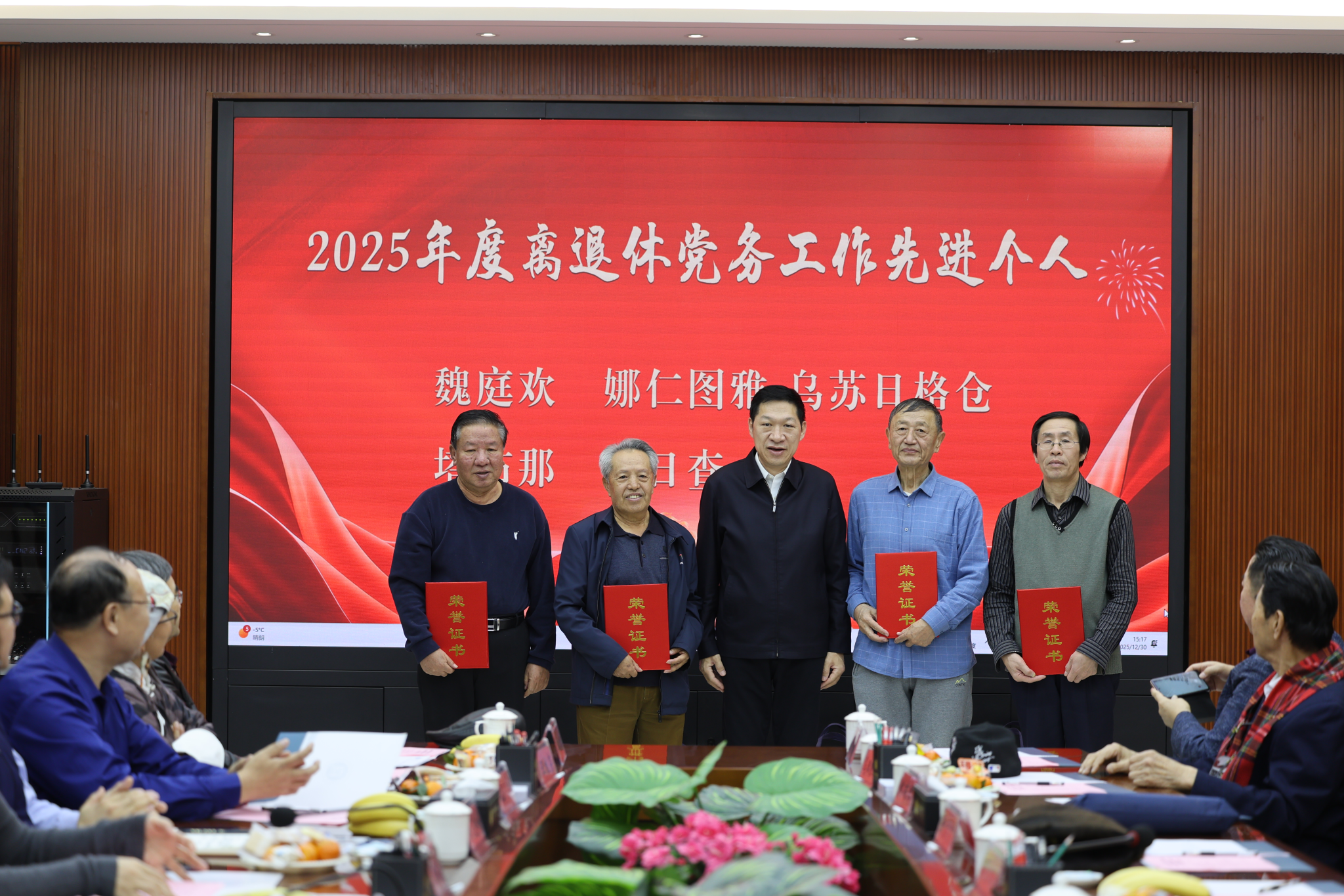 茶话会上,党委委员、组织部部长王文慧宣读了离退休老同志获奖名单。离退休人员工作处副处长额尔敦其其格汇报了2025年离退休人员工作开展情况。