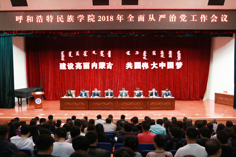 4月28日下午,学校在图书馆二楼报告厅召开了2018年全面从严治党工作会议。学校领导班子成员、副处级以上干部、各党总支委员、党支部书记,离退休人员代表、党外人士代表、师生党员代表参加了会议,会议由党委副书记、院长格日乐图主持。