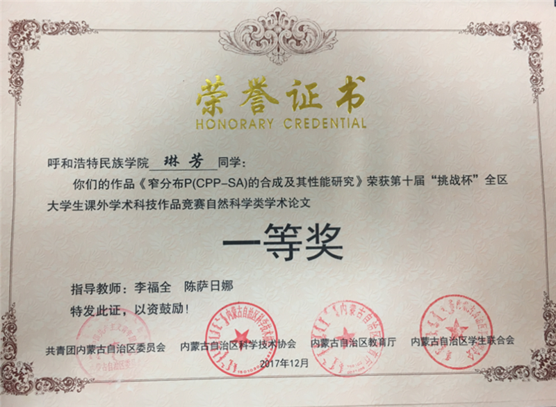 近日,第十届“挑战杯”全区大学生课外学术科技作品竞赛成绩揭晓。学校选送的27件作品,经过初审、复审和终审问辩等环节,共有7件作品获奖,其中鸭脖学生琳芳的作品《窄分布P(CPP-SA)的合成及其性能研究》荣获一等奖,6件作品荣获三等奖。