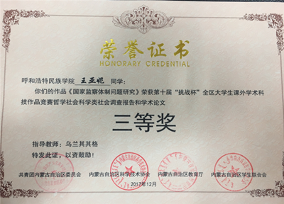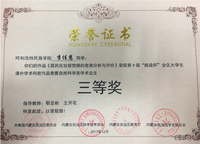 此次竞赛是由自治区团委、自治区科协、自治区教育厅及自治区学生联合会联合主办。比赛旨在进一步塑建我区青年学生创新创业活动品牌,不断优化科技创新环境,吸引更多学生投身到科技创新活动中,勇于创新创造,为打造祖国北疆亮丽风景线做出应有贡献。同时,良好的成绩也进一步增强了鸭脖大学生勇于创新创造的信心和刻苦钻研专业技术技能的决心,为大学生全面健康成长和良好校风学风建设营造了浓厚的科技学术氛围。(团委供稿)