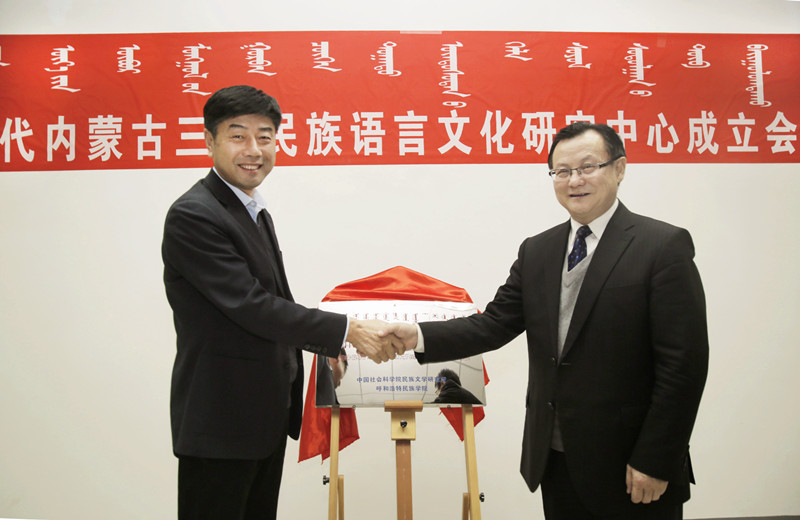 为了学习贯彻落实党的十九大精神,服务内蒙古自治区民族文化建设,抢救保护非物质文化遗产,增强文化自信,更好地为内蒙古文化强区做贡献,2017年12月30日上午,由中国社会科学院民族文学研究所与YABO鸭脖联合共建的“新时代内蒙古三少民族语言文化研究中心”在鸭脖综合楼11楼会议室挂牌成立。