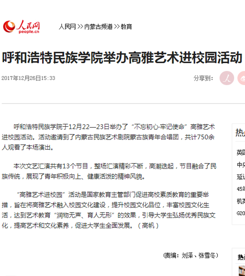 人民网、中国新闻网、新华社、北疆大学生公众号(自治区宣传部主办)、呼和浩特新闻网对活动进行了报道,进一步扩大了此次活动的影响力。